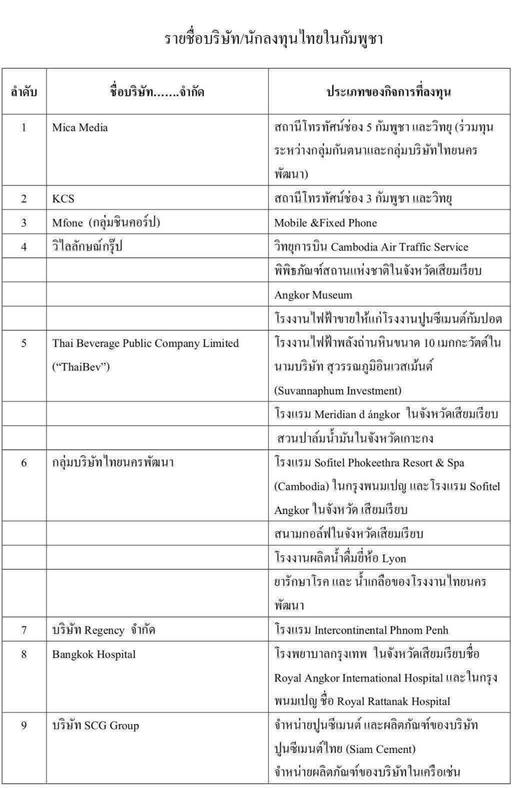 ทุกครั้งที่เวลาไทยรบกับเขมรแล้วจะมีกลุ่มคนมาคอยฉุดกระซากลากดึงทหารไทยเอาไว้ไม่ให้ทหารจัดการกับเขมรแบบเบ็ดเสร็จเด็ดขาด บริษัทใหญ่ทั้งนั้นเป็นร้อยบริษัทเลยคนไทยตาสว่างกันได้แล้วข้อมูลพวกนี้ไม่ใช่ความลับเปิดเผยกันได้