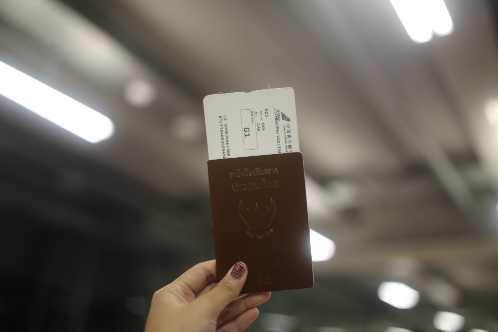 ตรงมาที่สนามบินสุวรรณภูมิเคาน์เตอร์จะอยู่ช่วงประมาณด้านหลัง U V แล้วแต่รอบ ข้อดีคือเราเลือกที่นั่งมาก่อนล่วงหน้าได้ แต่ไม่สามารถเช็คอินออนไลน์ไฟท์บินระหว่างประเทศค่ะ แต่รอไม่นาน มีหลายเคาน์เตอร์ได้ตั๋วมาแล้วก็มารอ ด้านไหนเตรียมตัวบินไปกวางโจวค่ะ ใช้เวลาบินมาที่กวางโจวประมาณ 3 ชั่วโมงค่ะบนเครื่องก็เสิร์ฟอาหารที่เราจองไว้ ข้อดีของการจองอาหารไว้ล่วงหน้าคือเราจะได้อาหารก่อน