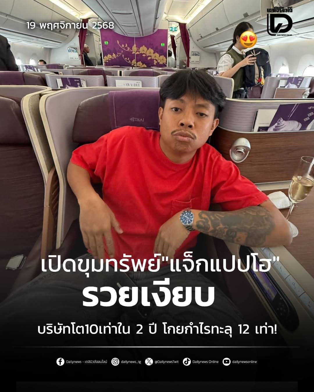 ไม่ธรรมดา! แจ็กแปปโฮ นั่งแท่นผู้ถือหุ้นใหญ่ บริษัททำเงินโตไม่หยุด รายได้ปี 67 ทะลุ 6.5 ล้านบาท ฐานะการเงินโคตรมั่นคง!...