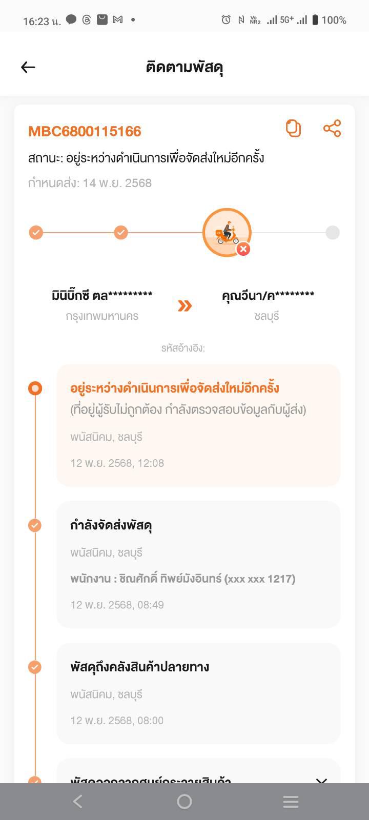 - 14 พย. 68 ผมโทรไปอีก คอลเซ็นเตอร์บอกให้รอ อย่างเดียวจะรีบจัดส่ง อัพเดทสถานะสินค้าอยู่บ่อทอง ชลบุรี