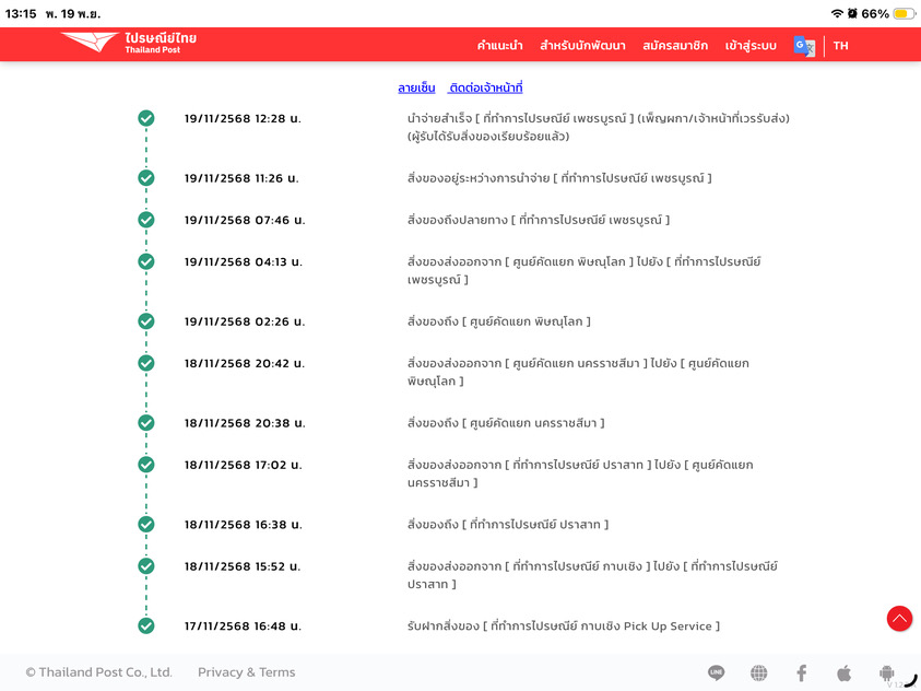 สั่งของ แล้วขึ้นจัดส่งสำเร็จ