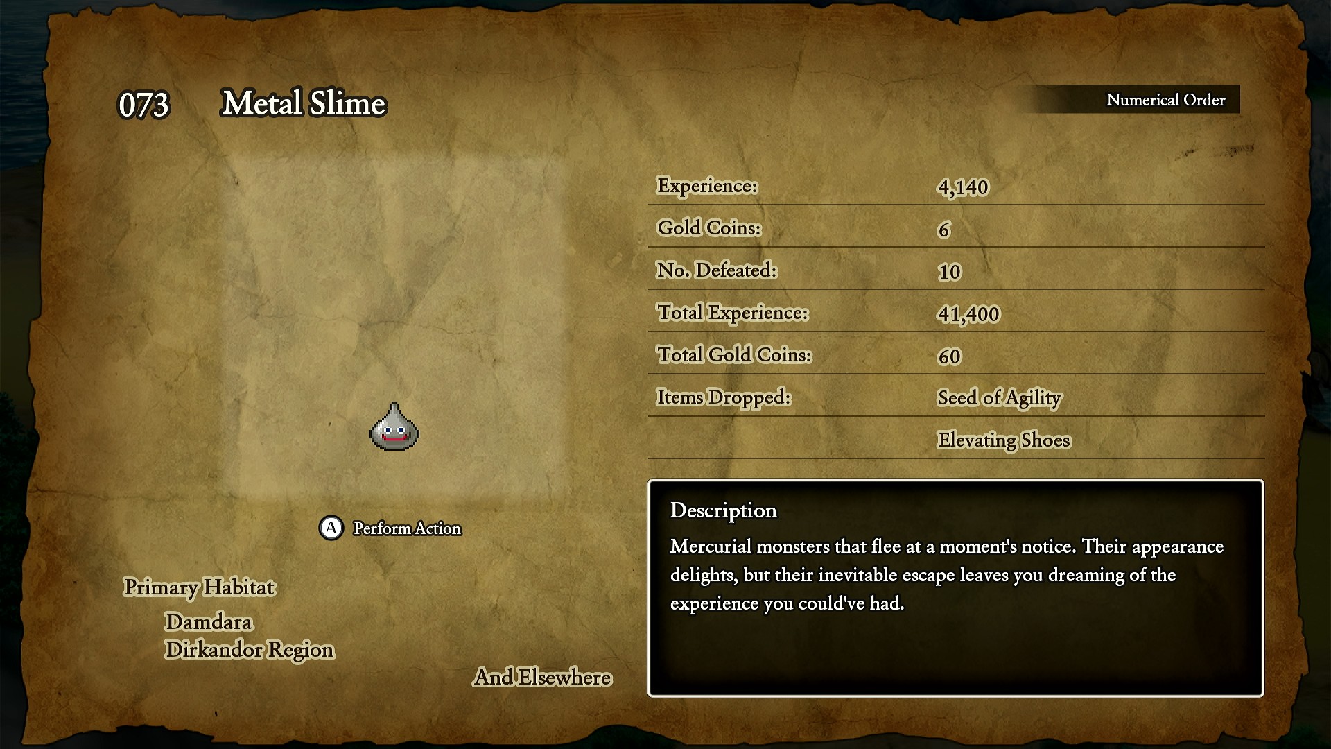 2.เดินรอบเมืองไปเรื่อยๆหรือใช้ Abilities ชื่อ Whistle (くちぶえ) ผิวปากไปเรื่อยๆจนกว่าจะเจอ Metal Slime (メタルスライム) ซึ่ง metal slime จะออกมาสูงสุด 8 ตัว