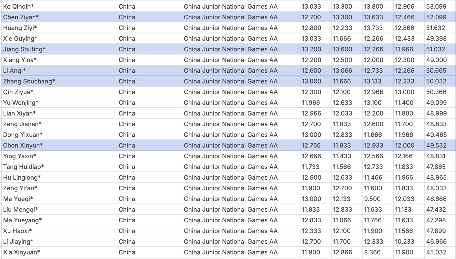คะแนนประเภทรวมอุปกรณ์บุคคลเยาวชนหญิงจีนในปี 2025 ! 🇨🇳🤸♀️🙌🙌🙌