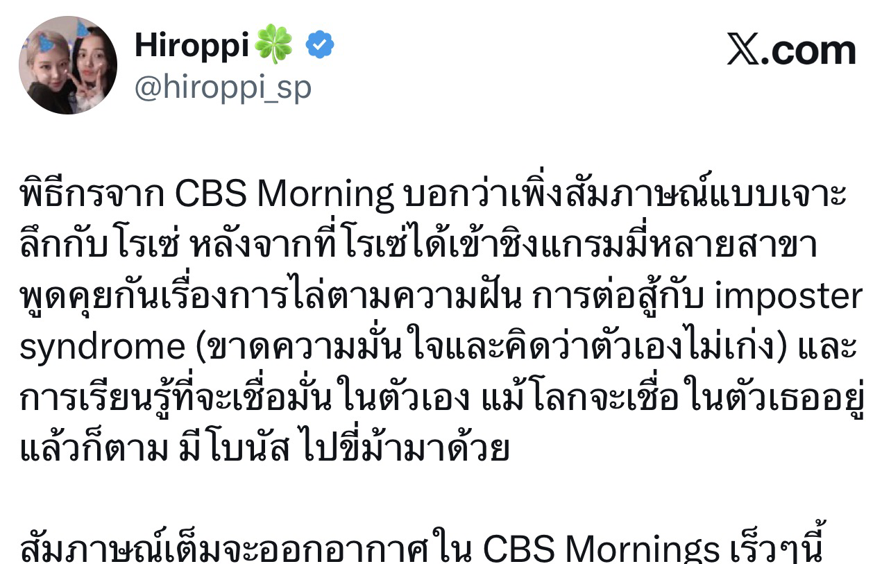 พิธีกรจาก CBS Morning บอกว่าเพิ่งสัมภาษณ์แบบเจาะลึกกับโรเซ่หลังจากที่โรเซ่ได้เข้าชิงแกรมมี่หลายสาขา
