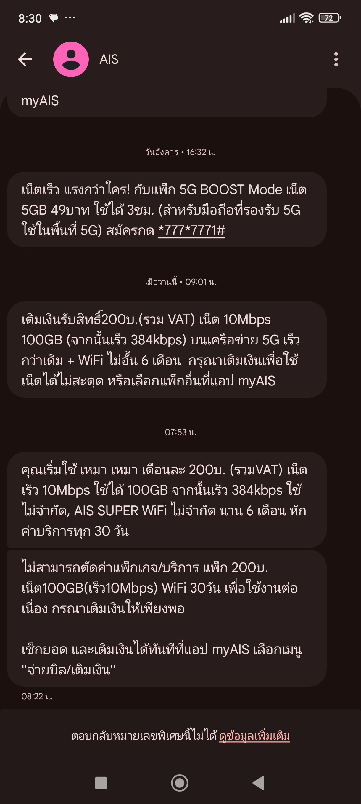 ทำไมถึงเปลี่ยนแพ็กเกจอัตโนมัติ AIS ต้องการใช้เน็ตแพ็ก 200 บาท เน็ตไม่จำกัด เร็ว 10 Mbps