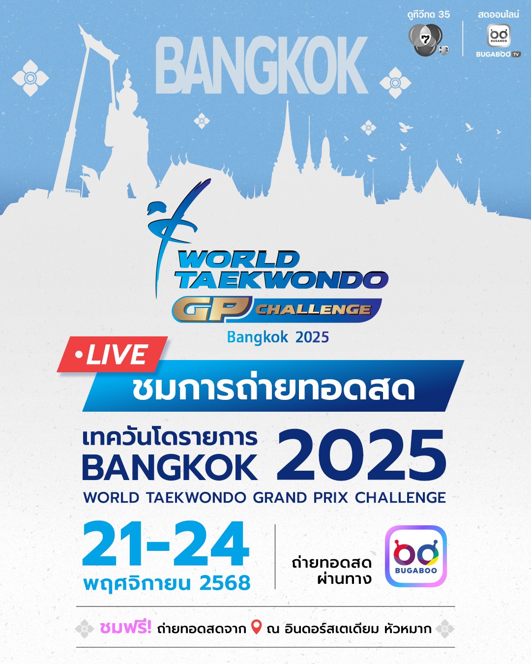 🥋แฟนเทควันโดห้ามพลาด ‼ BUGABOO.TV ชวนรับชมการถ่ายทอดสดการแข่งขันเทควันโดรายการ Bangkok 2025 World Taekwondo Grand Prix Challenge🏆