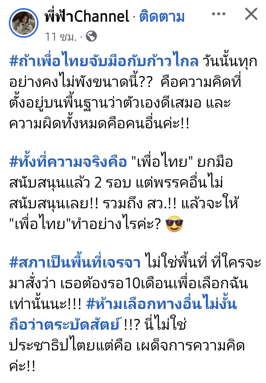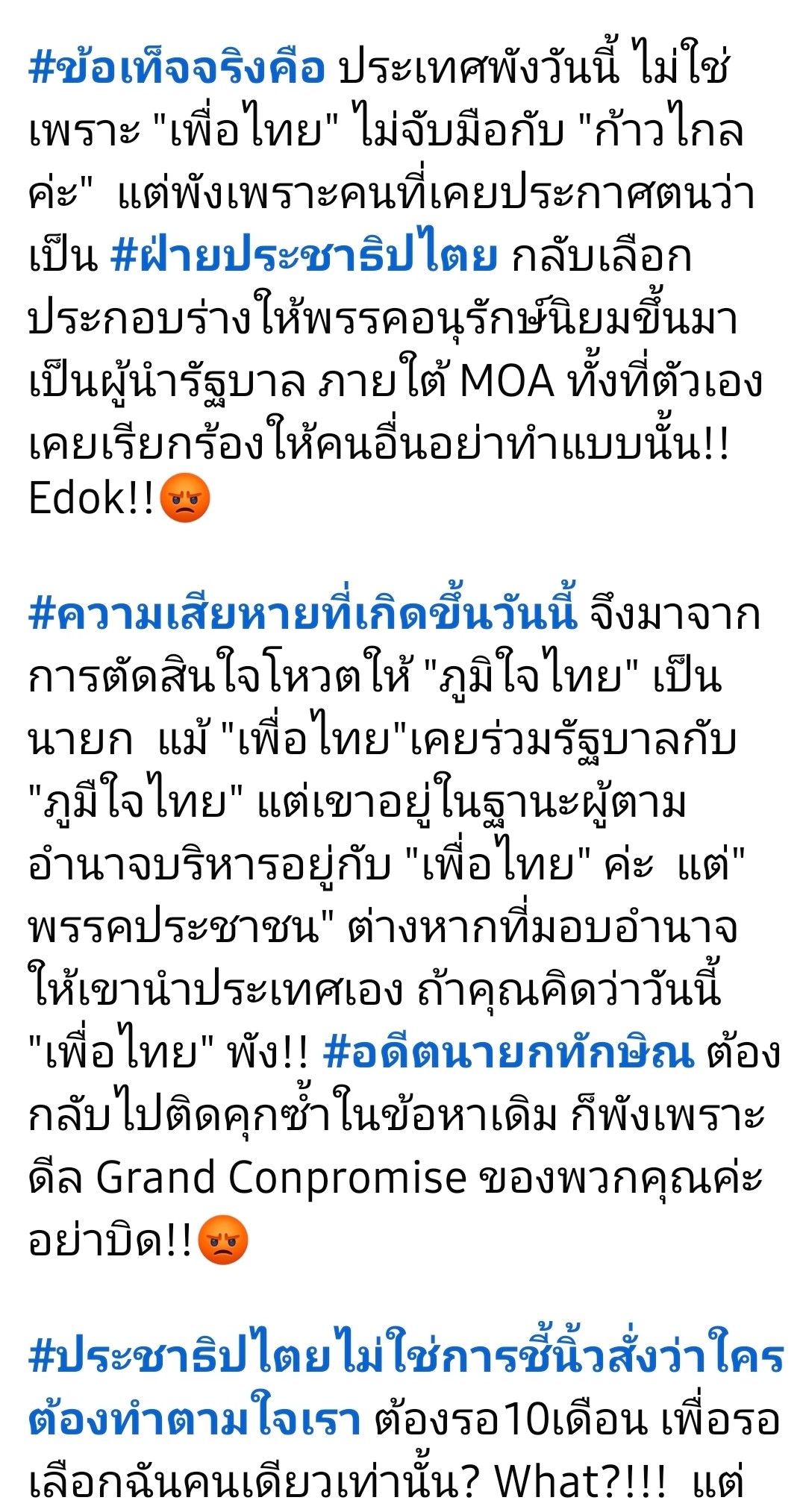 ผลการเลือกตั้ง 2566 สะเทือนเลือนลั่นไปทั่วประเทศ ปวงชนแสดงเจตจำนงประชาธิปไตย หลังจากอยู่ในยุคประยุทธ์มาเกือบ 10 ปี พรรคแดง และ พรรคส้ม รวมกันสามารถจัดตั้งรัฐบาลที่มีเสถียรภาพเข้มแข็งได้ (แม้จะต้อง