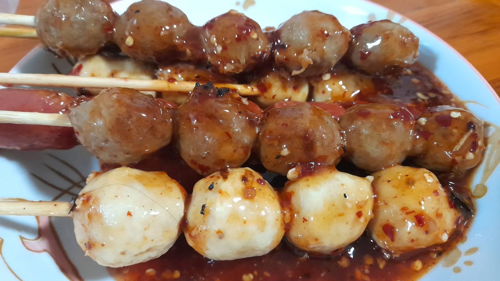 แวะมาชิมลูกชิ้นย่าง ไม้กี่บาทไม่รู้ ลูกสาวซื้อมากิน