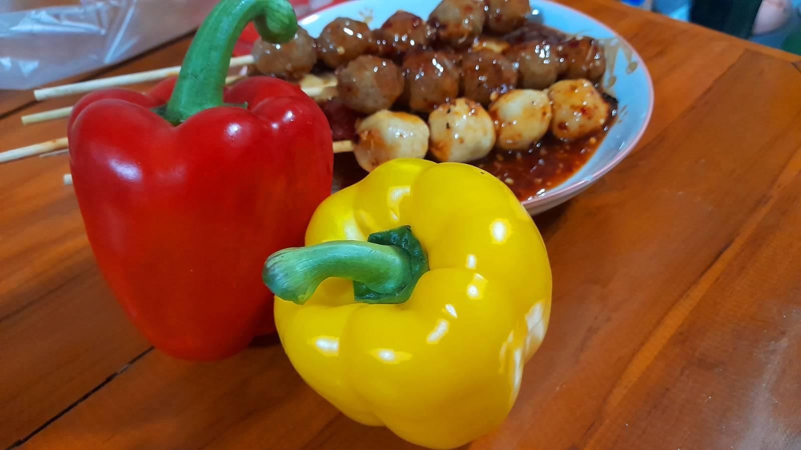 ส่วนพริกลูกใหญ่ๆ ไม่รู้คือพริกอะไร แต่ไม่เผ็ด