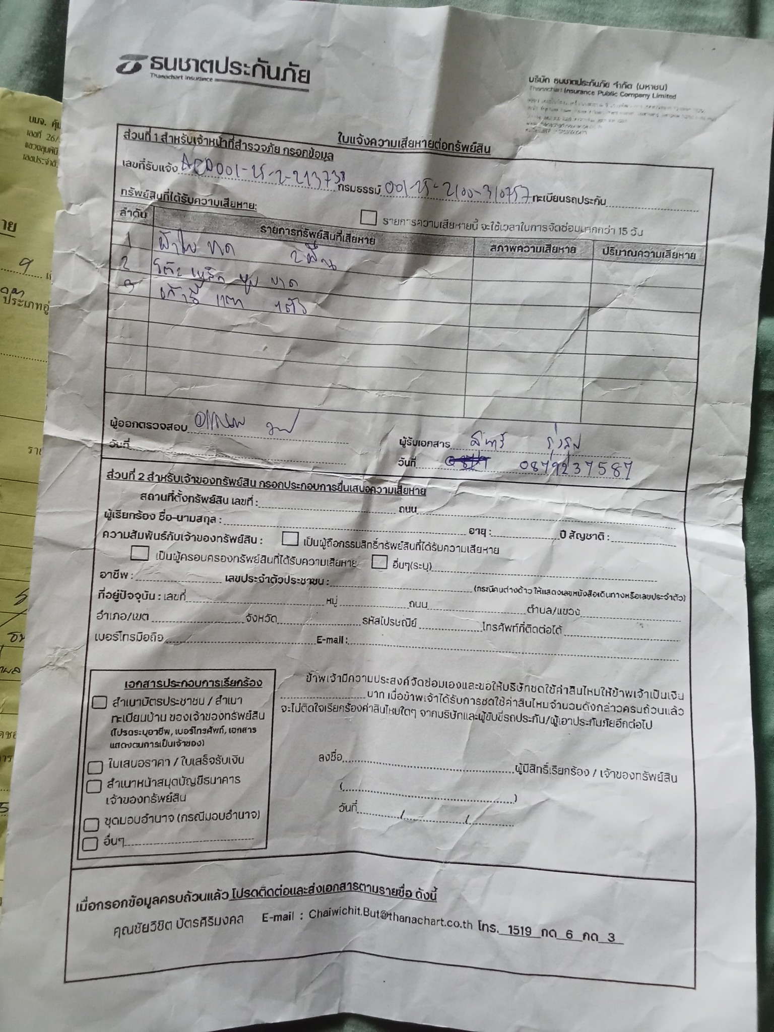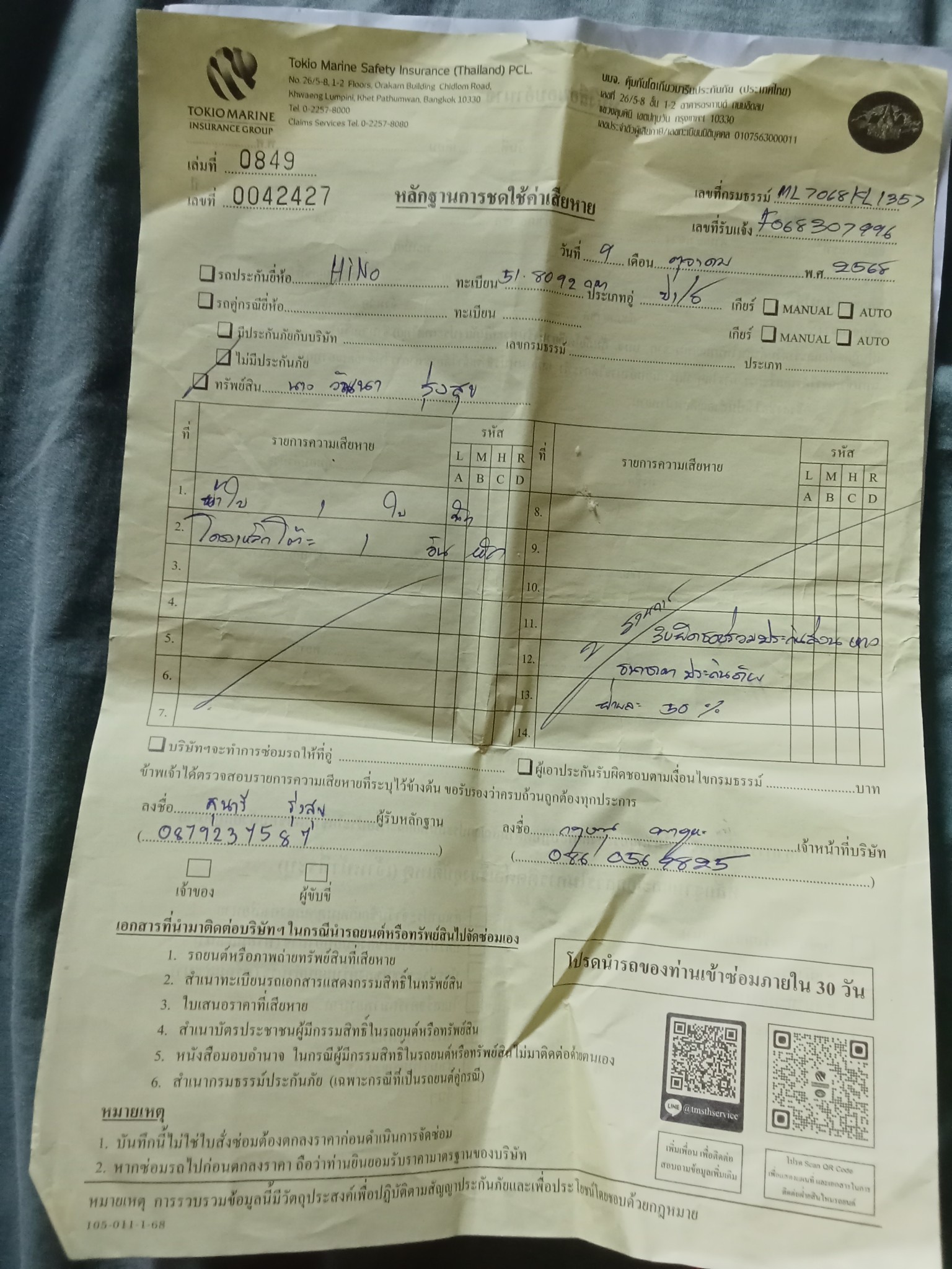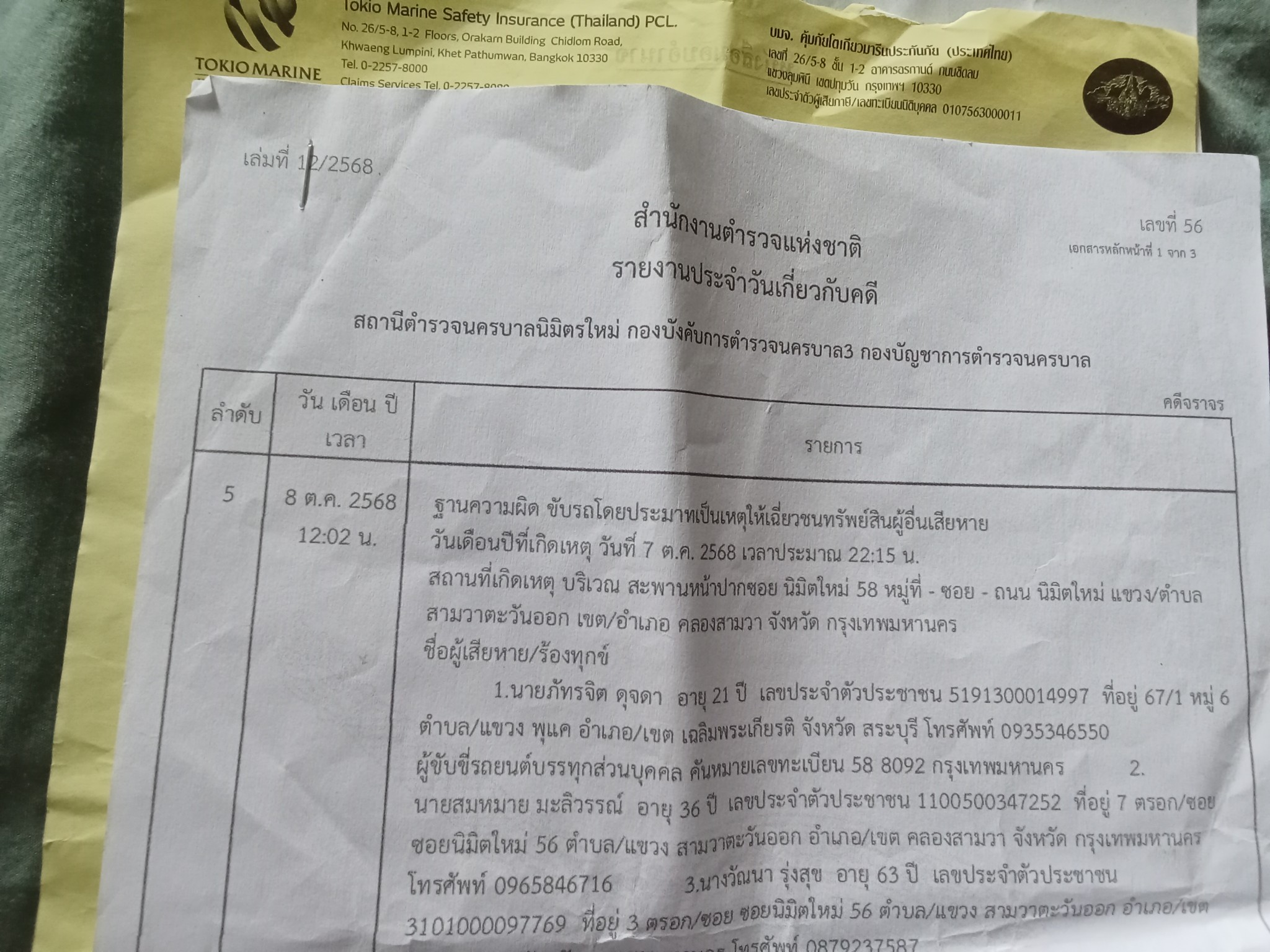 เคลมทรัพย์สินเสียหายจากอุบัติเหตุรถยนต์ ของธนชาต กับโตเกียวมารีน