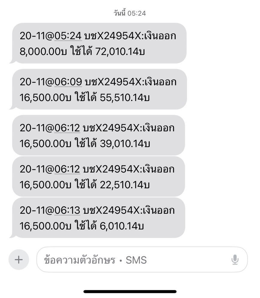 อยู่ดีๆ เวลา5:30 ก็มีเงินไหลออกจากบัญชีแบบไม่รู้ตัว ทำให้เงินเก็บทั้งหมด จาก74,000 เหลืออยู่แค่6,000