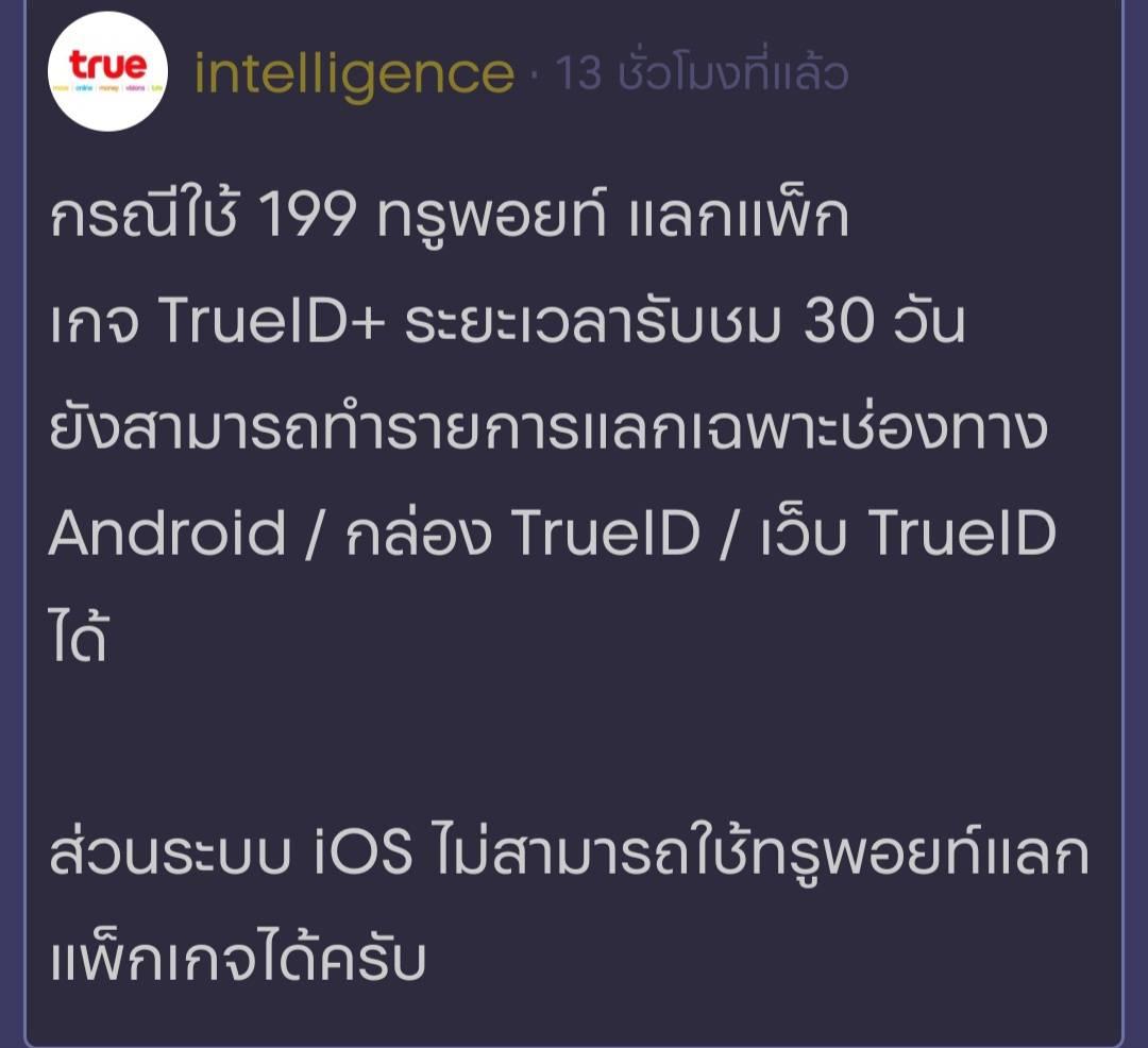ตอนนี้ยังใช้ 199 true point แลก true id plus 30วัน ได้อยู่เหมือนเดิมมั๊ยคะ หาไม่เจอ