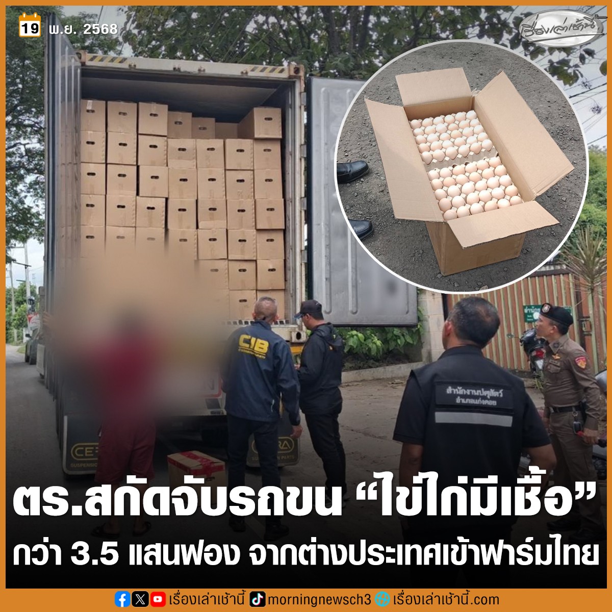👨✈️ ตร.สกัดจับรถขน “ไข่ไก่มีเชื้อ” จากต่างประเทศ กว่า 3.5 แสนฟอง ลักลอบเข้าฟาร์มไทย เสี่ยงแพร่ระบาด🥚