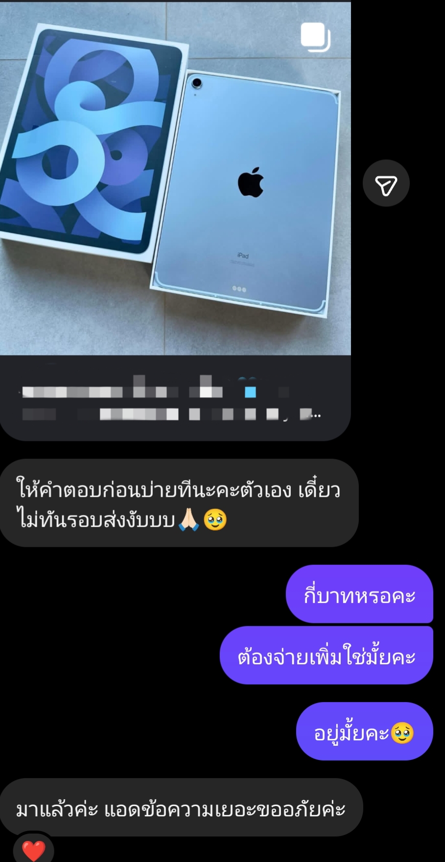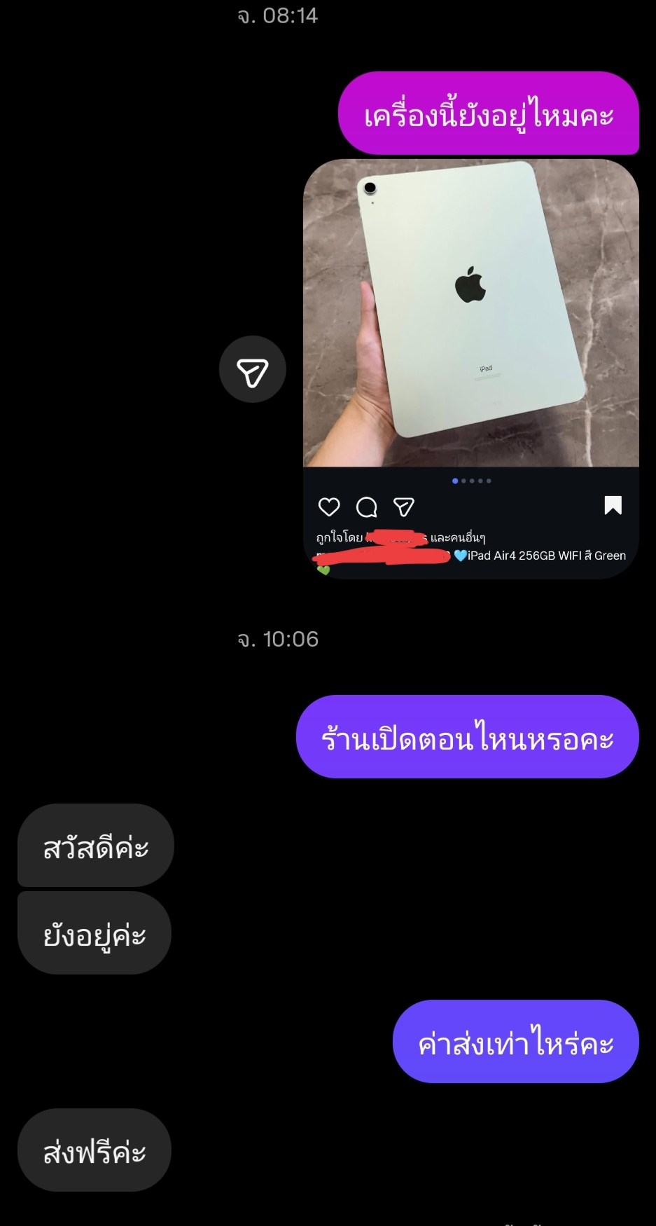 เราไปสั่งไอแพดร้านนึงในไอจีค่ะ สั่งไปตั้งแต่วันจันทร์