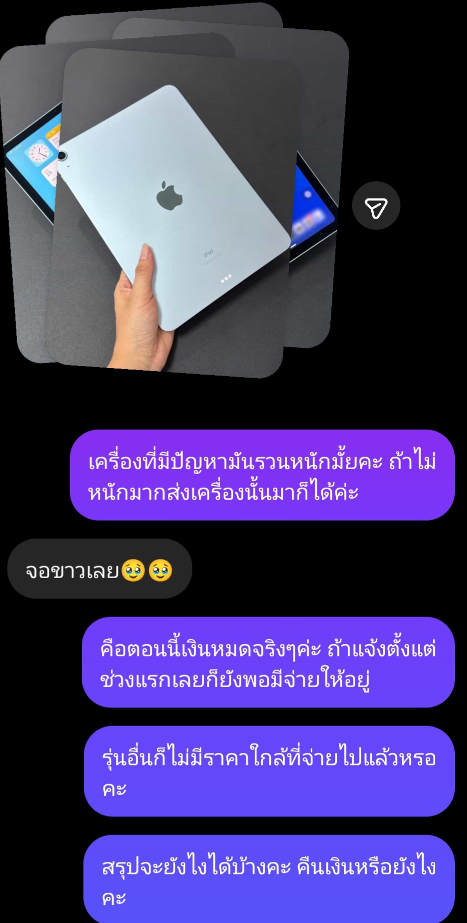 คือเรากำลังมองหาไอแพดมือสองอยู่ครับแล้วบังเอิญไปเจอร้านนึงในไอจี ร้านนี้เค้าบอกว่าขายไอแพดหลุดจำนำซึ่งพอเราเห็นราคาก็ค่อนข้างตกใจเพราะมันถูกมากกก (เช่น ipad air 5 ราคาอยู่ที่น้อยกว่า10000 บาท) เราเลยอ