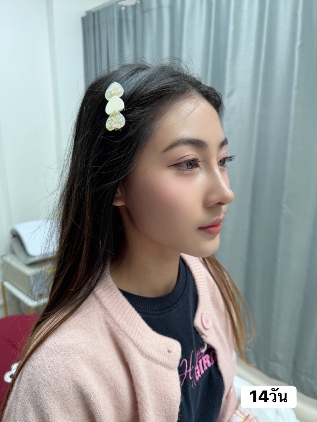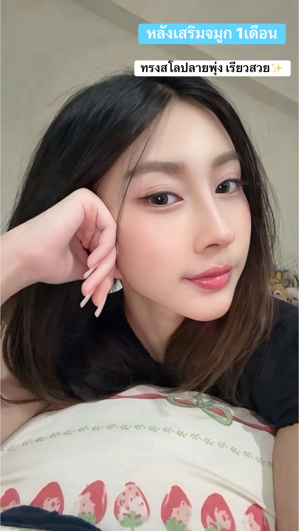 สวัสดีค่า วันนี้มาอัพเดทความสวยหลังเสริมจมูกครบ1เดือน ชอบมากค่ะ สันจมูกคมชัด ดูมีมิติขึ้น เวลาถ่ายรูปมุนไหนก็ขึ้นกล้องทุกมุมค่ะ ทรงก็มีความสโลปปลายพุ่งหวานๆ ดูเรียวกว่าเดิมค่ะ