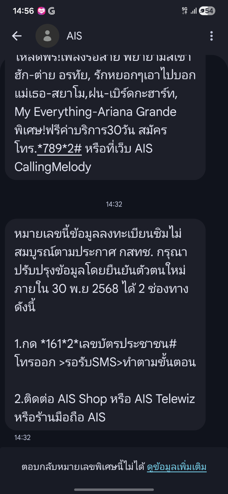 ถ้ามีข้อความมาแบบนี้จาก AIS ผมควรโทรหา AIS Call Center เลยไหม