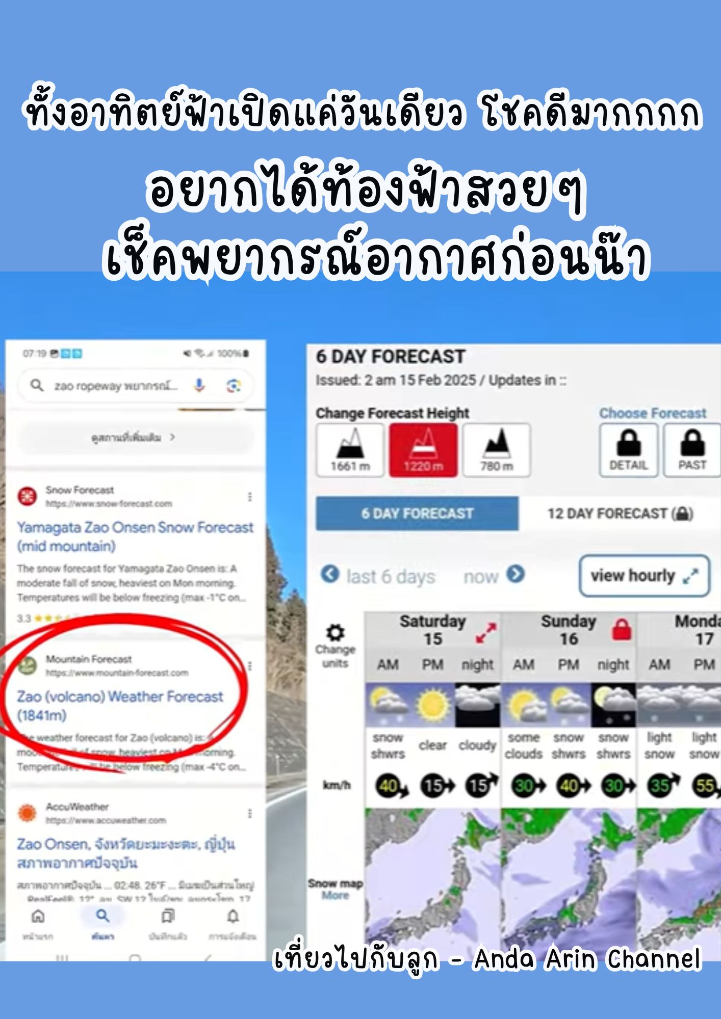 Zao Snow Monster ไปดูปีศาจหิมะกันค่ะ จะบอกว่าก่อนมาลุ้นมากๆเลยค่ะเพราะเราจองตั๋วเครื่องบินล่วงหน้า6เดือน ก่อนจะมา1อาทิตย์เช็คสภาพอากาศทุกวัน กลัวมาถึงแล้วฟ้าปิด แต่บุญยังมีทั้งอาทิตย์ฟ้าเปิดวันที่แม่พาเด็กๆมาแค่วันเดียว บรรยากาศจริงสวยมาก สีท้องฟ้าตัดกับหิมะอยากจะอยู่ด้านบนถึงค่ำดูแสดงแสงสีแต่ไม่ไหวค่ะ อากาศด้านบนหนาวมากๆค่ะ 0องศา เตรียมถุงร้อนแบบกำ แผ่นรองเท้ามาเยอะๆนะคะ จะได้เที่ยวกันแบบสนุก