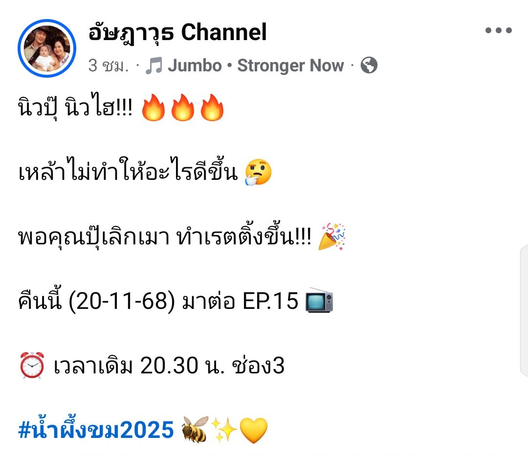 คนดูเตือนสติคุณปุ๊ อย่าเพิ่งมูฟออนไว กลับไปตามหาเมียก่อน "น้ำผึ้งขม" เรตติ้งแรงต่อเนื่อง ทุบสถิติ New High ทุกพื้นที่ . #น้ำผึ้งขม #ABitterHoneymoon วันจันทร์-พฤหัสบดี เวลา 20.30 น. #