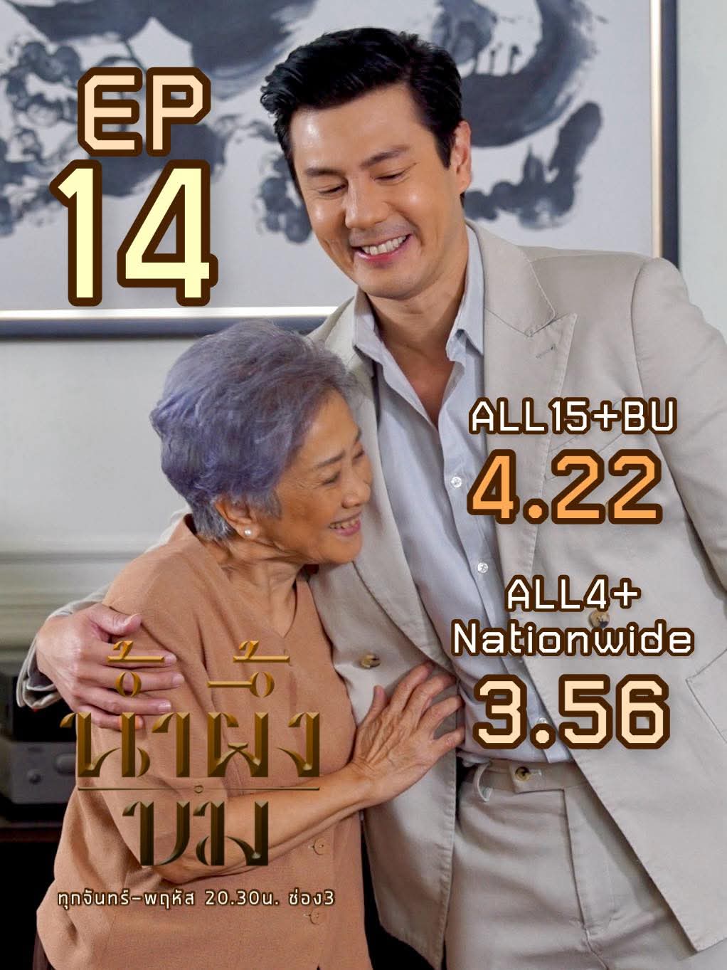 📌 เรตติ้งละคร "น้ำผึ้งขม" EP.13 เรตติ้งกรุงเทพฯ 4.23 / เรตติ้ง 15+ BU 3.91 / เรตติ้งทั่วประเทศ 3.52 ทำ New High !!! 🎉