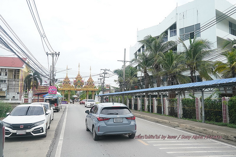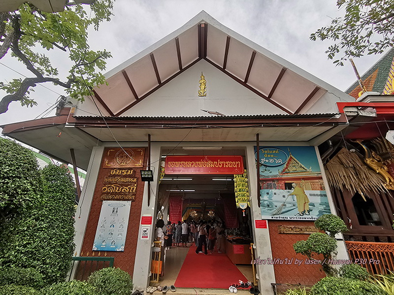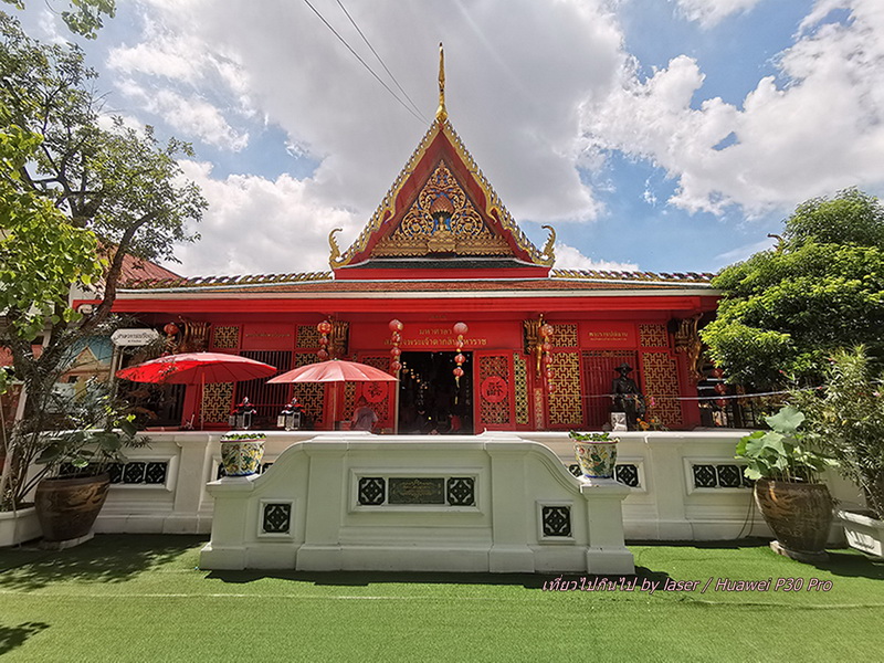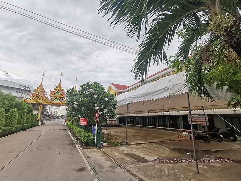 อาคารสีแดงทางด้านขวามือติดกับวิหารชั่วคราวหลวงพ่อสมปรารถนา