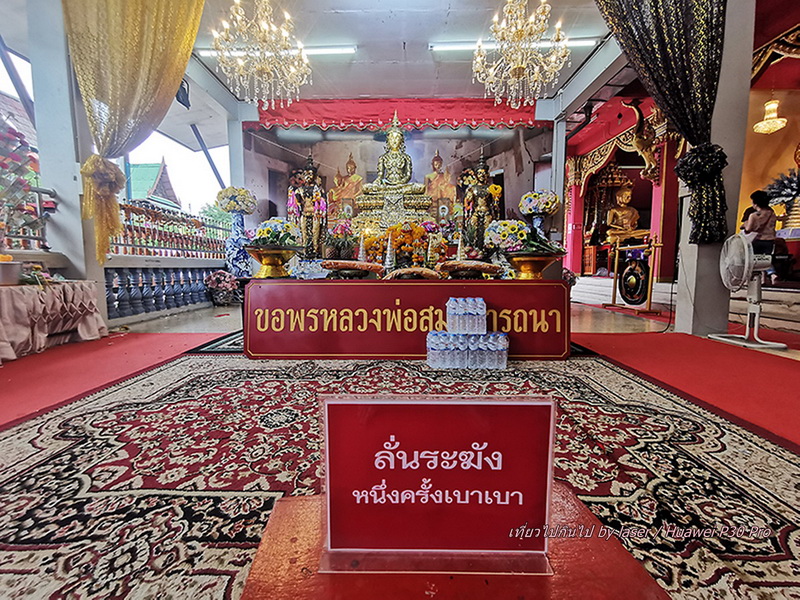 จุดแรกที่แวะชม คือ วิหารชั่วคราวหลวงพ่อสมปรารถนา ระหว่างที่หลังจริงด้านหลังอยู้ระหว่างการบูรณะ