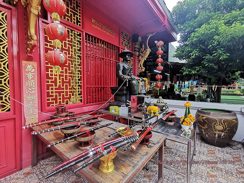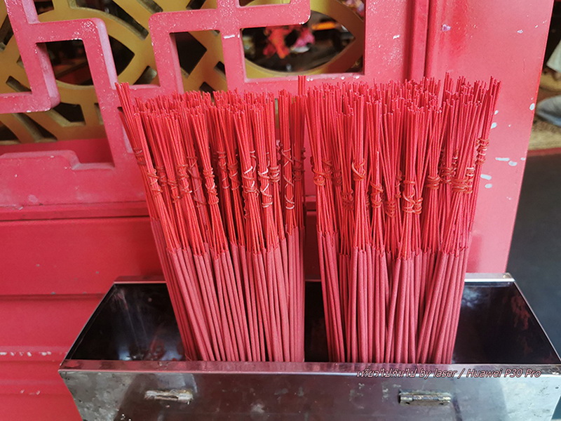 หน้าทางเข้ามีธูปสีแดงมัดตามจำนวนกระถางธูปที่ต้องปัก