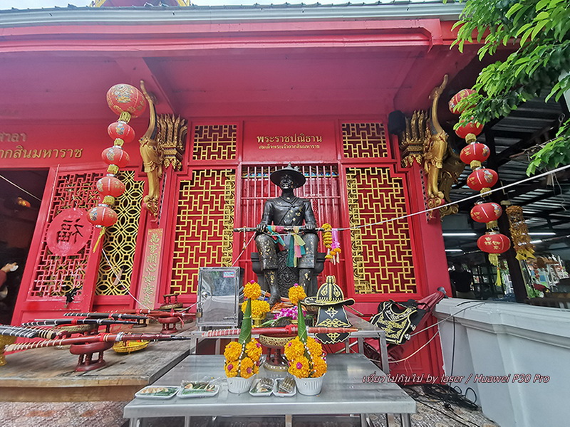 จะพบกับรูปหล่อปางประทานพรของสมเด็จพระเจ้าตากสินมหาราช แบบเดียวกับหน้าทางเข้า