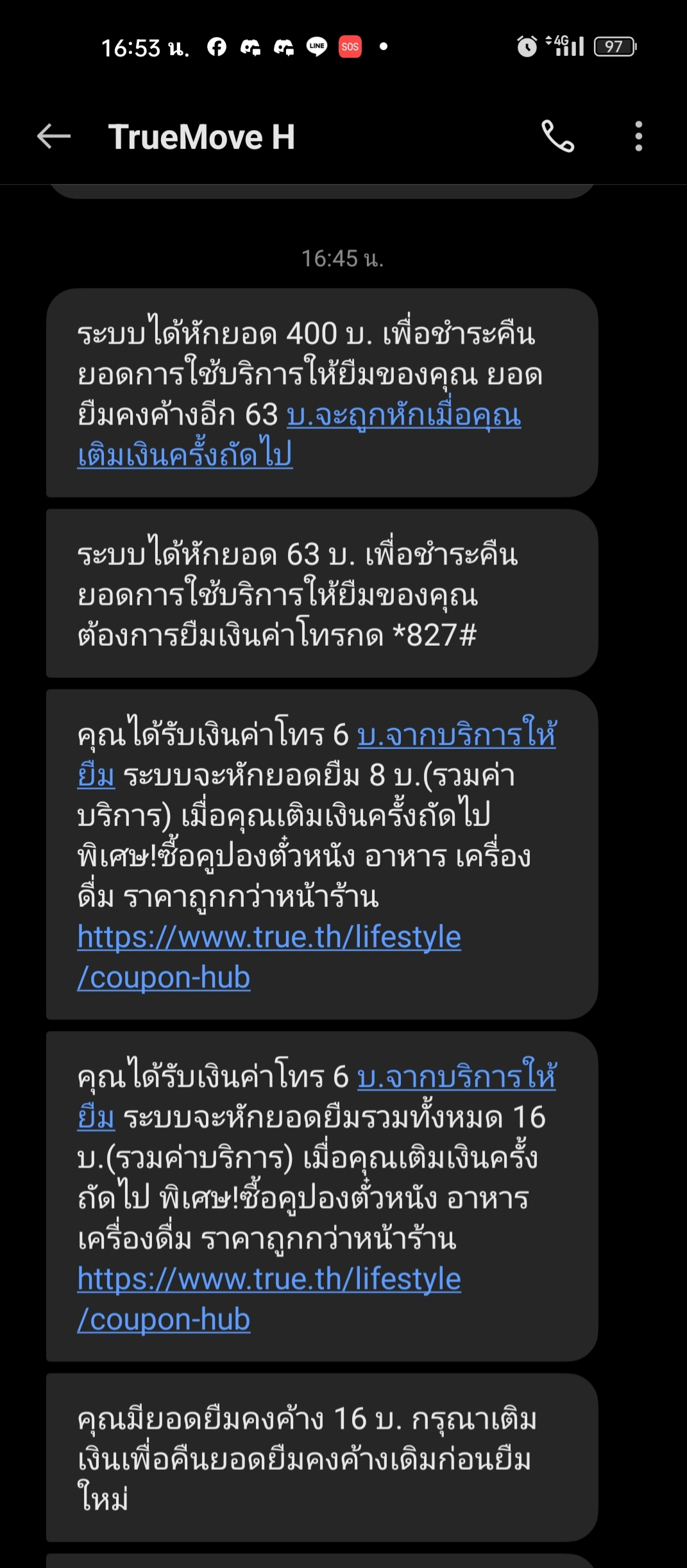 ทรูหักเงินที่ยืมไเกิน จำนวนที่ยืม