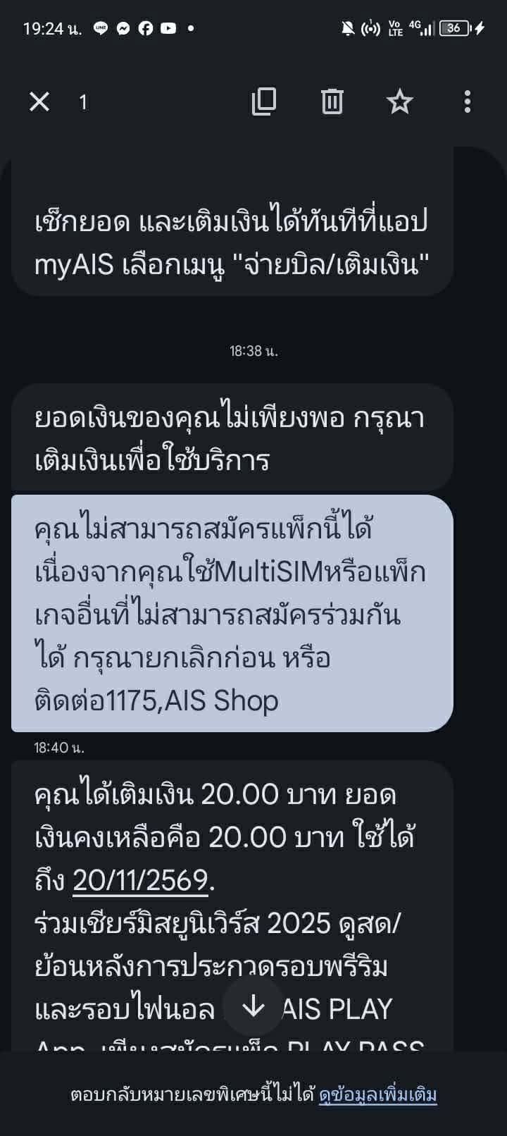 ซิมAIS โดนระงับการใช้งาน โทรออกไม่ได้ รับสายไม่ได้