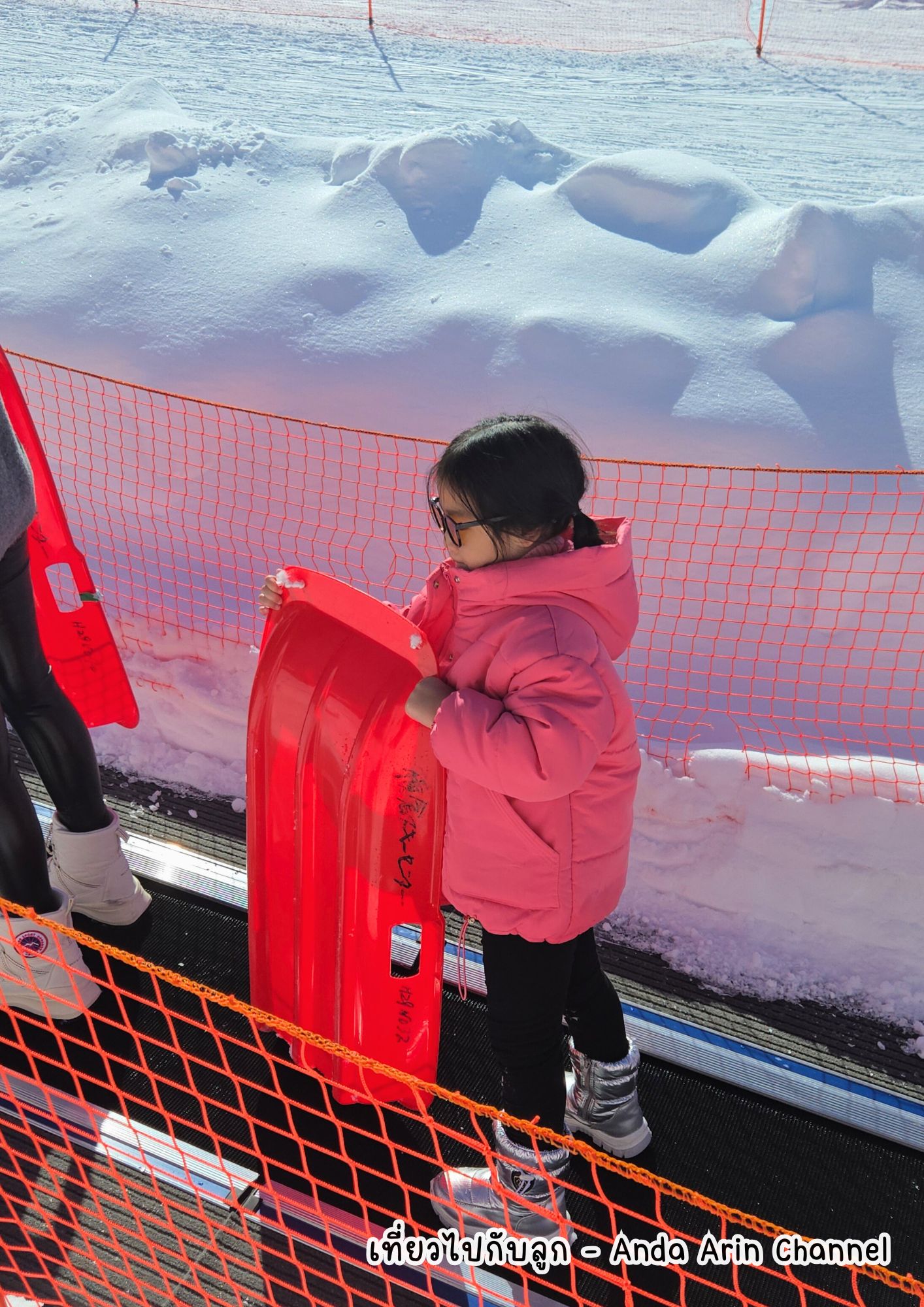 ระหว่างรอซื้อตั๋วขึ้นกระเช้าไปดูปีศาจหิมะด้านบน แม่อาร์มพาอันดากับอลินแวะมาเล่น SKI Board แก้เบื่อค่ะ เด็กๆชอบมาก ราคาค่าเช่าไม่แพงด้วยค่ะเล่นได้ไม่จำกัดเวลา