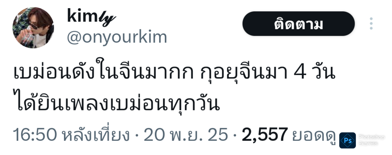 แฟนเพลง TXT ท่านหนึ่งออกมาโพสต์สารภาพอย่างจริงจังเลยว่า BABYMONSTER ดังมากๆในจีนจริงๆไปจีนมา 4 วันได้ยินเพลงน้องๆเบม่อนทุกวัน