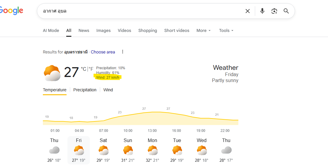 สังเกตุความเร็วลม ที่อุบลราชธานี จะแรงประมาณ 20 กว่ากิโลเมตรต่อชั่วโมงถึง 40 กิโลเมตรต่อชั่วโมง บ่อยเหมือนกัน ในขณะที่จังหวัดทางอีสานจังหวัดอื่น โซนอื่น อย่าง โซนอีสานเหนือ อีสานกลาง จะประมาณ 10 กว่ากิโลเมตรต่อชั่วโมง แต่อุบลราชธานี อีสานใต้ เหมือนจะลมแรงกว่าจังหวัดอื่นๆ เลย