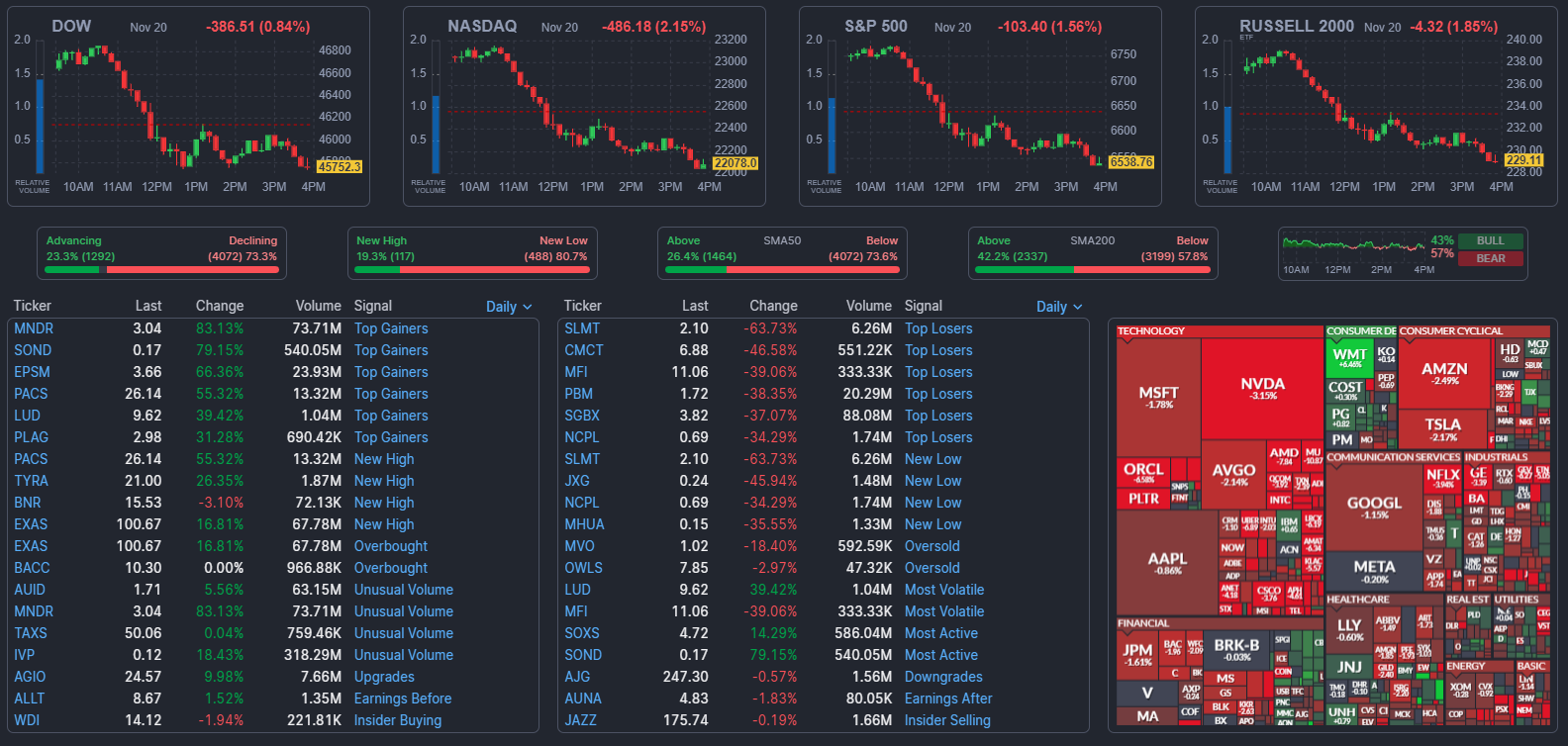 การปรับตัวลงของตลาดถูกนำโดยหุ้นกลุ่มเทคโนโลยีและเซมิคอนดักเตอร์ เช่น Nvidia ที่พลิกกลับมาปิดลบ