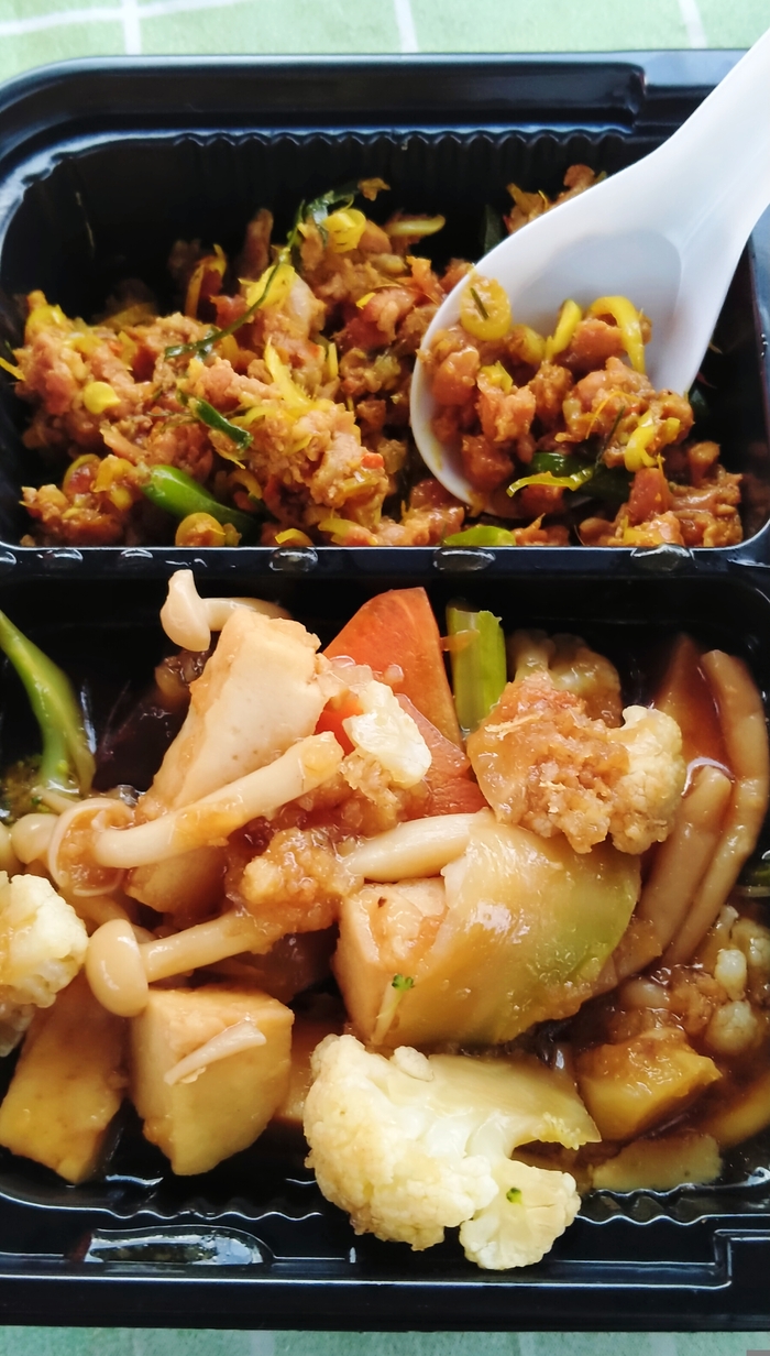 พะแนงไก่ + ผัดผักเต้าหู้ 🍛🍗🥦