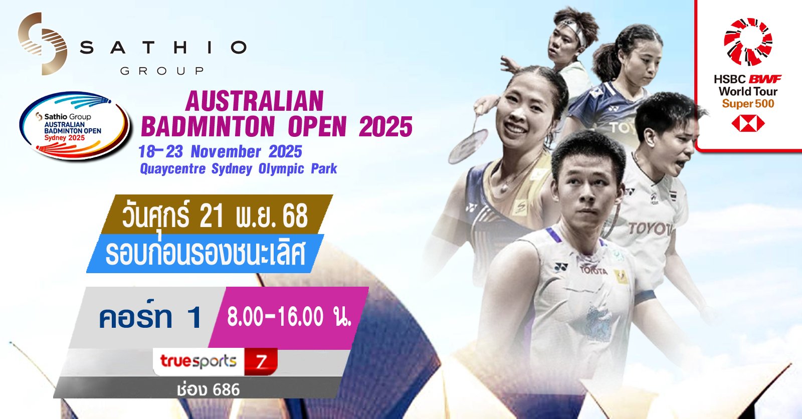 เชียร์สด ! แบดมินตัน SATHIO GROUP Australian Open 2025 : รอบก่อนรองชนะเลิศ (21 พ.ย. 68) (คู่แรก 8.00 น.)