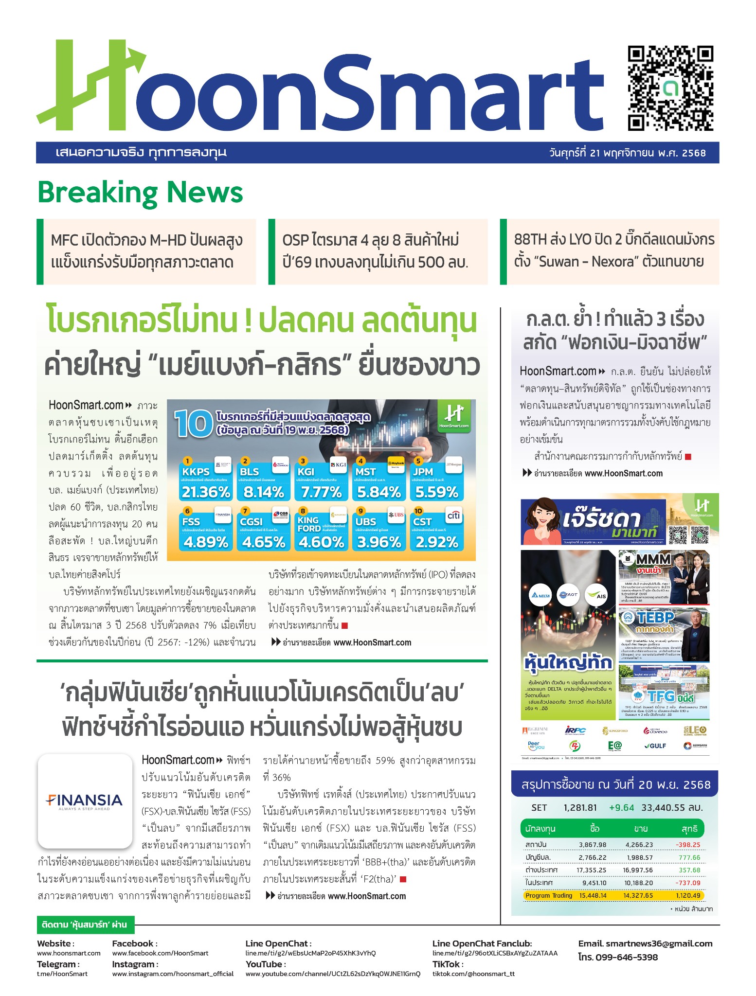 กรอบการลงทุน วันที่ 21 พย 2025