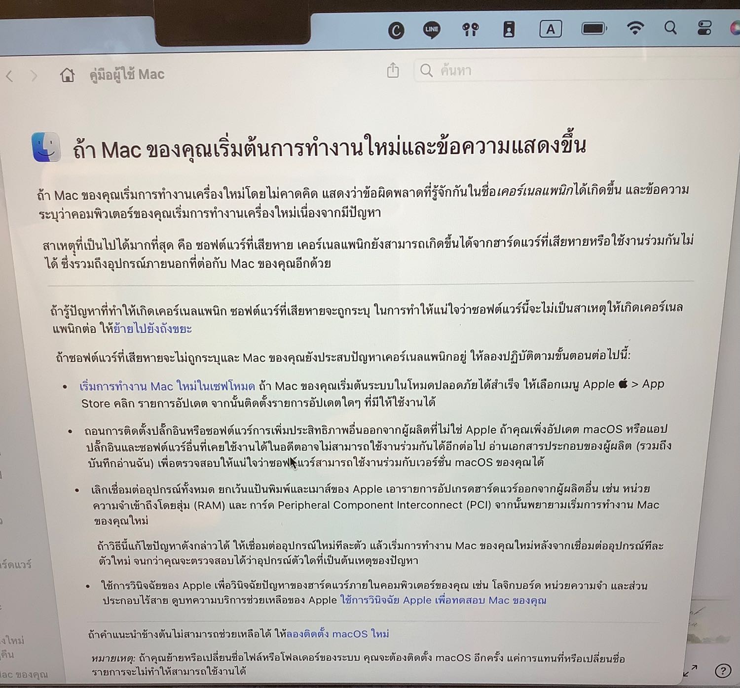 Macbook air m4 พึ่งซื้อมาเดือนที่แล้ว ขึ้นว่าเคอร์เนลแพนิก