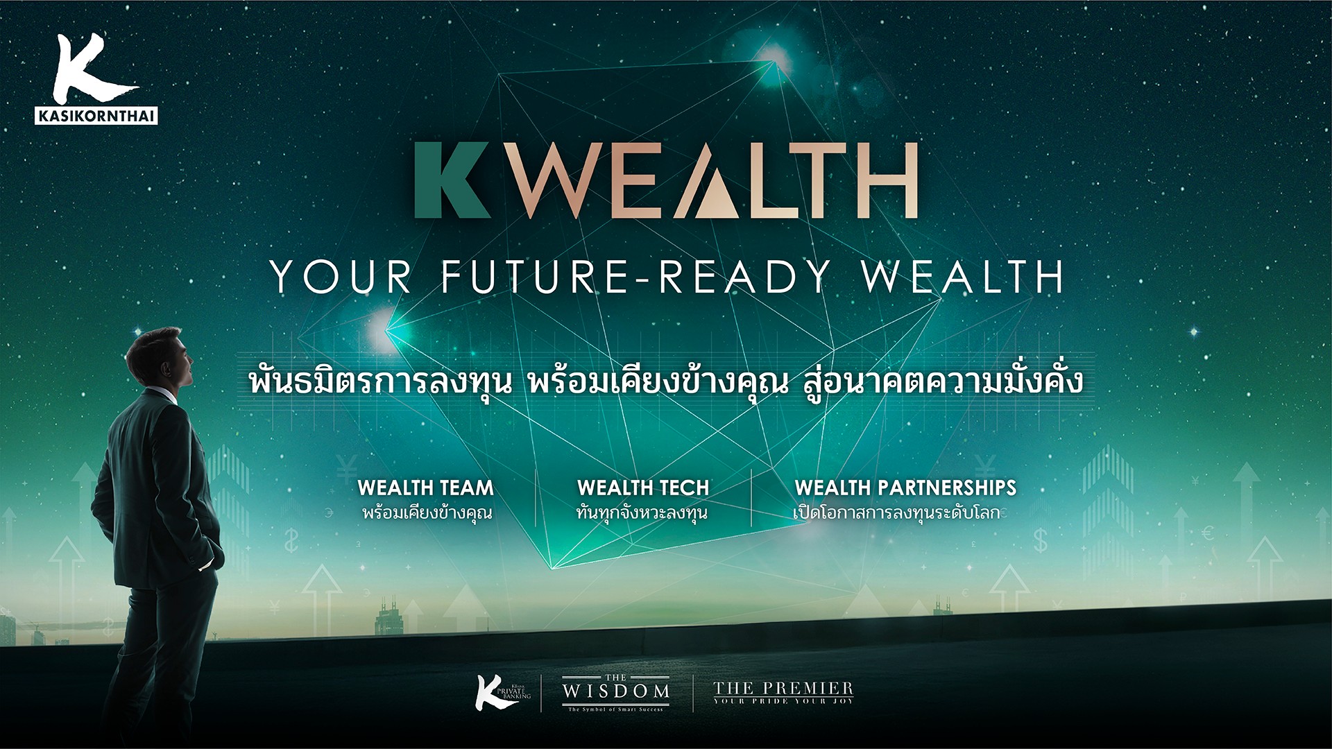 ธนาคารกสิกรไทย ตอกย้ำความเป็นผู้นำอันดับ 1 ด้านบริหารความมั่งคั่ง ยกระดับ K WEALTH เป็น "Lifelong Trusted Advisor ที่ปรึกษาด้านการลงทุนที่ลูกค้าไว้ใจในทุกช่วงชีวิต" ศูนย์รวมความเชี่ยวชาญในการบริหารความมั่งคั่ง พร้อมโซลูชันที่ครอบคลุม การเงิน การลงทุน ธุรกิจ และการดูแลคุ้มครองรอบด้าน ภายใต้คอนเซ็ปต์ "Your Future-Ready Wealth พันธมิตรการลงทุน พร้อมเคียงข้างคุณ สู่อนาคตความมั่งคั่ง" มุ่งเสริมแกร่งให้นักลงทุนไทยรับมือปัจจัยผันผวนของ VUCA ทั้งเศรษฐกิจ ตลาดทุน และภูมิรัฐศาสตร์ โดยผสาน 3 ศักยภาพของ Wealth Team, Wealth Tech และ Wealth Partnerships