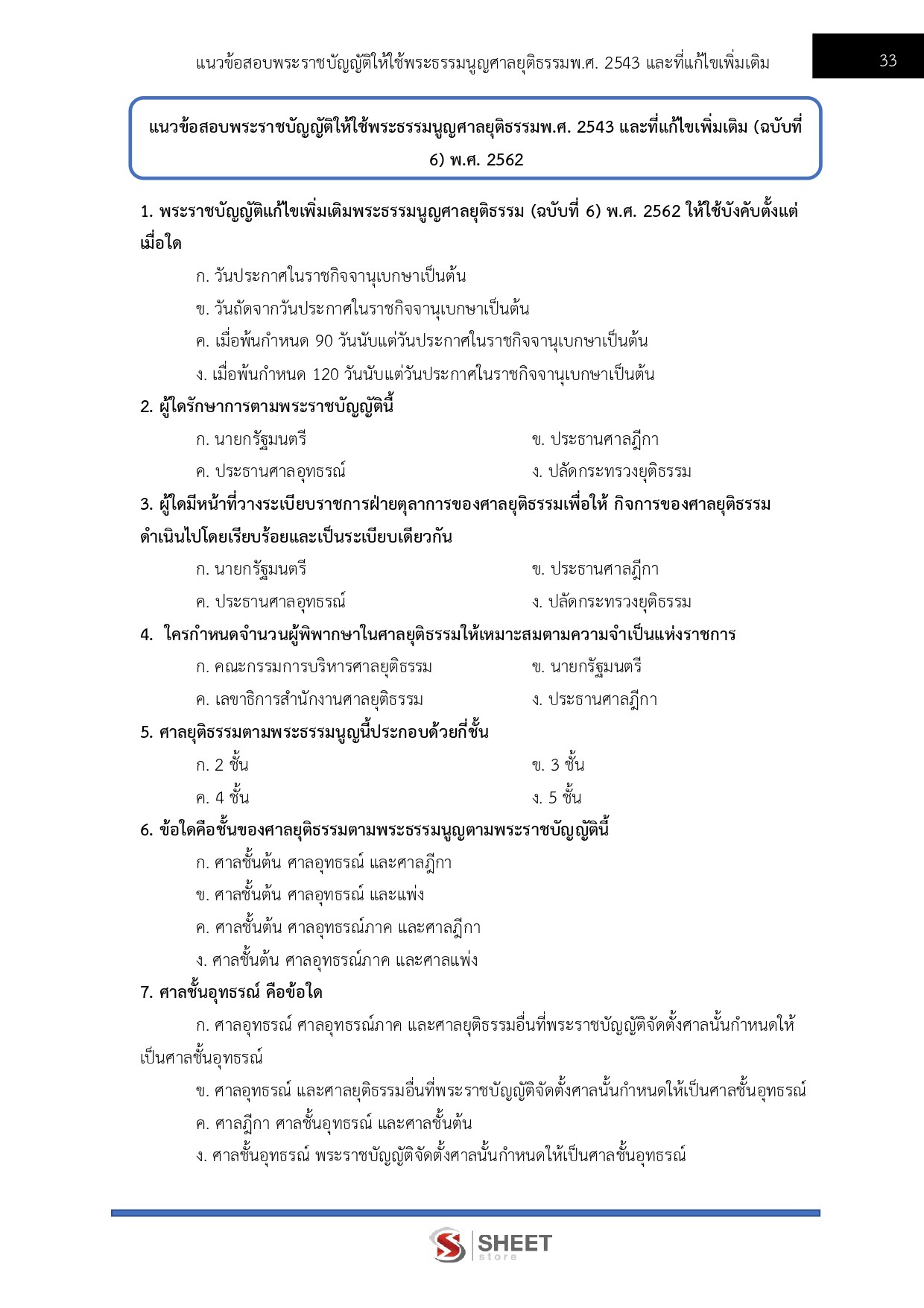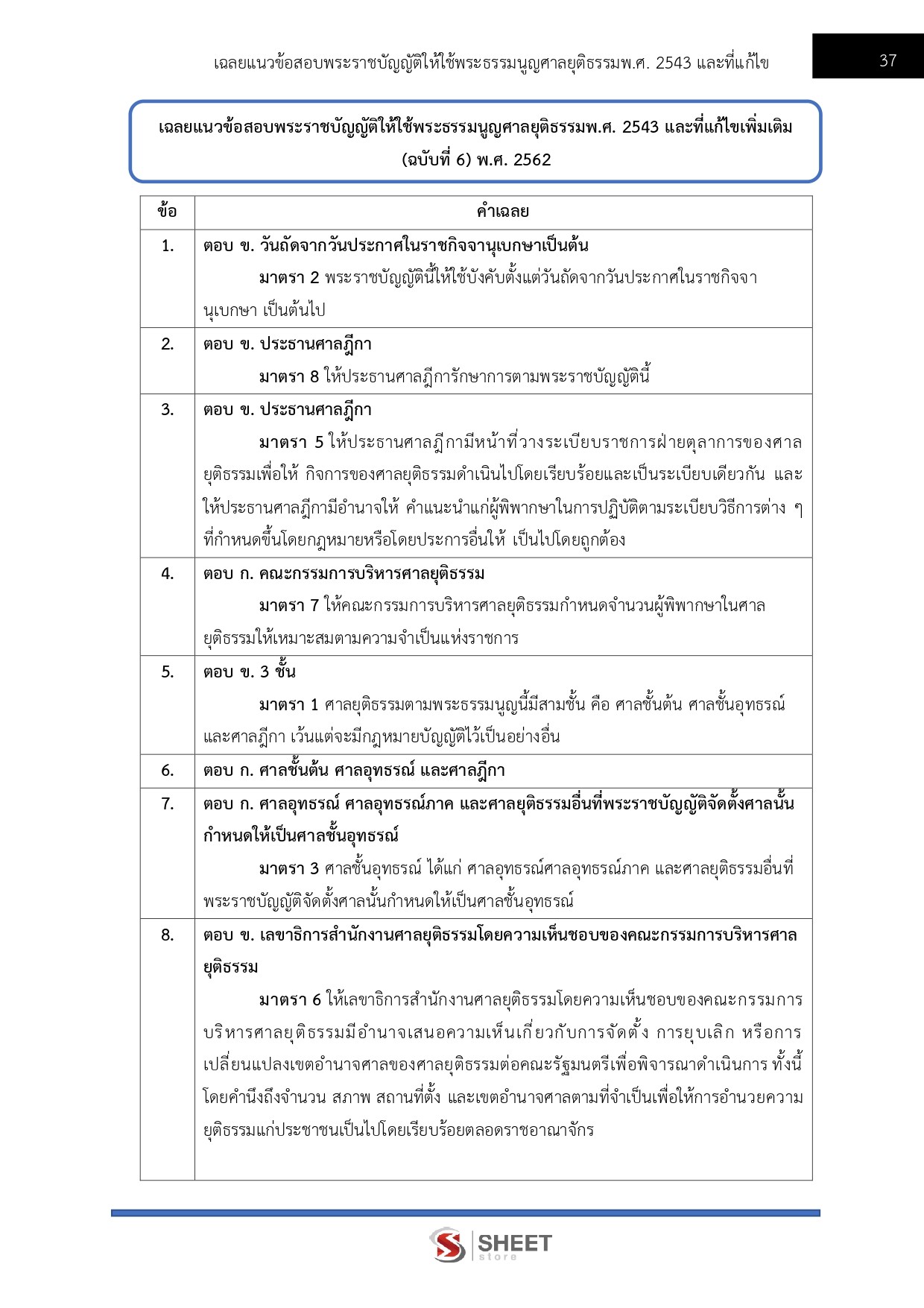 - แนวข้อสอบพระราชบัญญัติให้ใช้พระธรรมนูญศาลยุติธรรมพ.ศ. 2543 และแก้ไขเพิ่มเติม (ฉบับที่ 6) พ.ศ. 2562