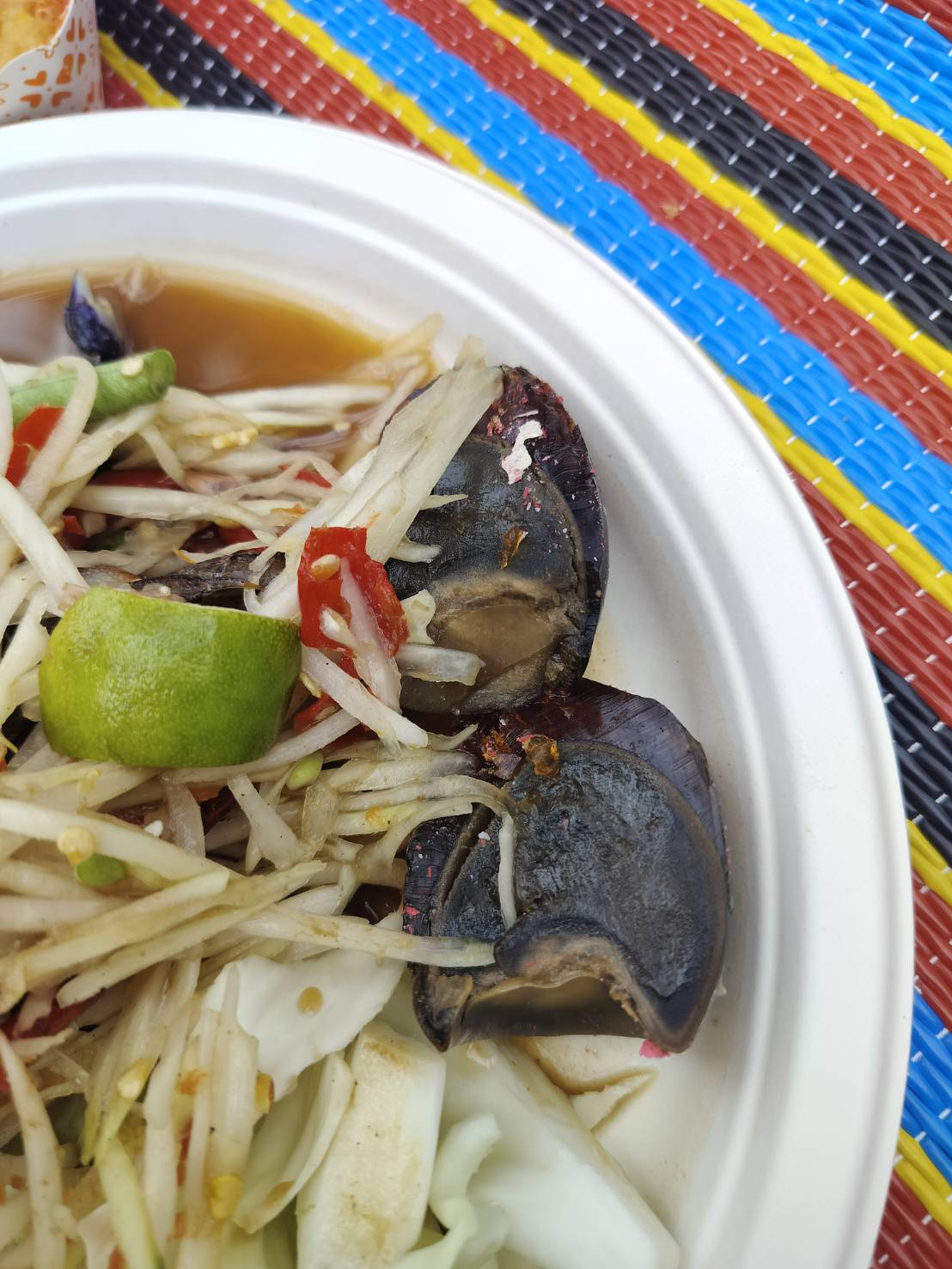 ส้มตำเห*้ยมากจืดสุดๆปอกไข่มีเปลือกอยู่เลยหลานฉันก็ปอกได้ค่ะบางแสนร้านแรกร่มน้ำเงินมีป้าแก่ๆขายอยู่ 2 คน