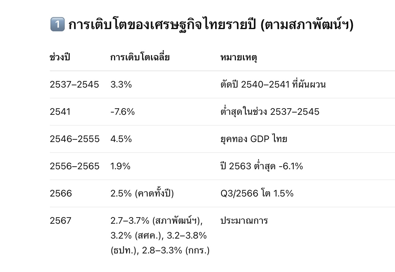 โตเฉลี่ย 3.3% (ตัดปี 2540–2541 ที่ผันผวน)