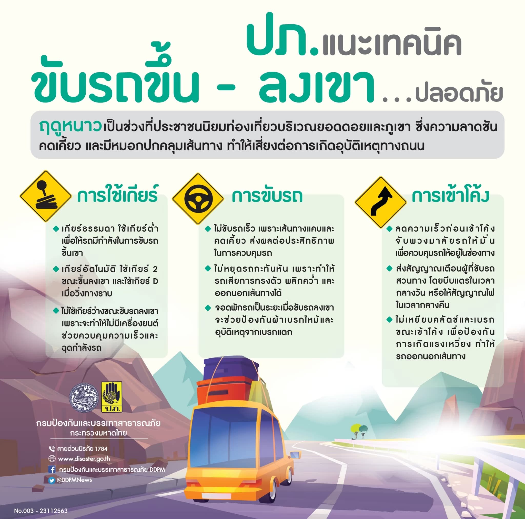 ปภ. แนะขับรถขึ้นดอย - ลงเขา ช่วงปลายฝนต้นหนาวอย่างปลอดภัย