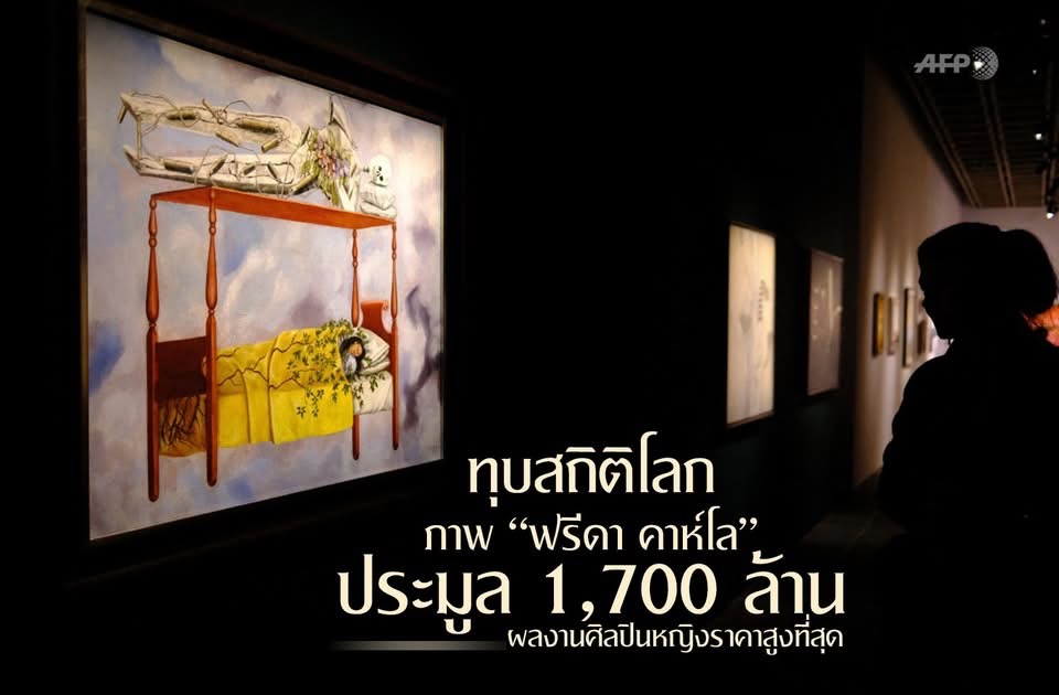 สำนักประมูลซัทเธอบีส์ (Sotheby’s) ในนครนิวยอร์ก เปิดเผยว่า ภาพวาดสีน้ำมัน “El sueño (La cama)” หรือ “ความฝัน/เตียงนอน” ปี 1940 ผลงานของ ฟรีดา คาห์โล (Frida Kahlo) ศิลปินหญิงระดับตำนานชาวเม็กซิกัน ถูกประมูลขายไปในราคา 54.66 ล้านดอลลาร์สหรัฐ หรือราว 1,773 ล้านบาท กลายเป็น งานศิลปะที่มีราคาสูงที่สุดในโลกสำหรับศิลปินหญิง ทำลายสถิติเดิมทั้งของคาห์โลและศิลปินหญิงคนอื่น ๆ