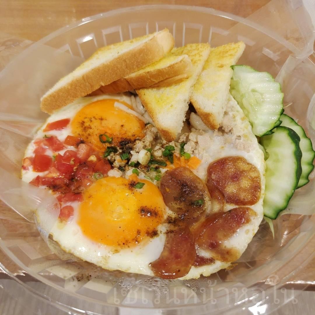 ผมสั่งไข่2ฟอง ราคา 40 บาท ได้ตามนี้เลยครับ มีหมูสับ หมูยอ กุนเชียง มะเขือเทศ ผักเคียงและขนมปังทาเนย