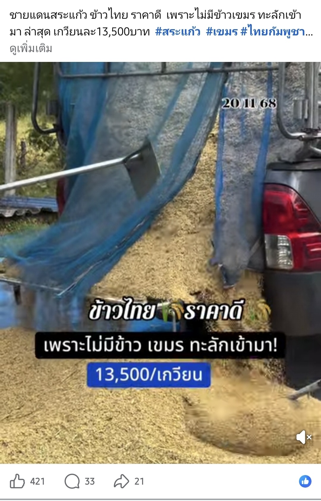 ตั้งแต่ปิดด่านเขมรชาวนาไทยขายข้าวได้ราคาดี