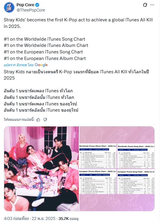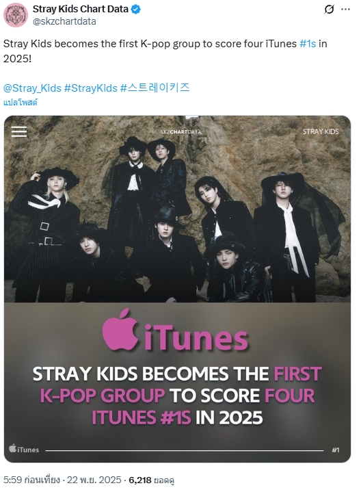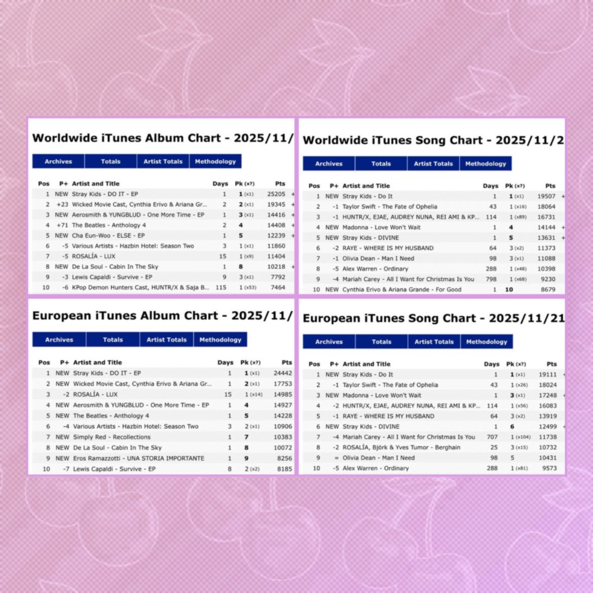 🔥 Stray Kids "Do It" อัลบั้มใหม่ที่ปล่อยเมื่อ 21 พ.ย. ได้สร้างปรากฎการณ์ ทำให้ SKZ กลายเป็นวงดนตรี K-Pop วงแรกที่มียอด iTunes All Kill ทั่วโลกในปี 2025