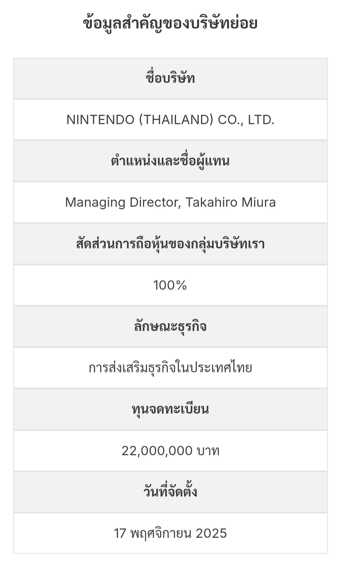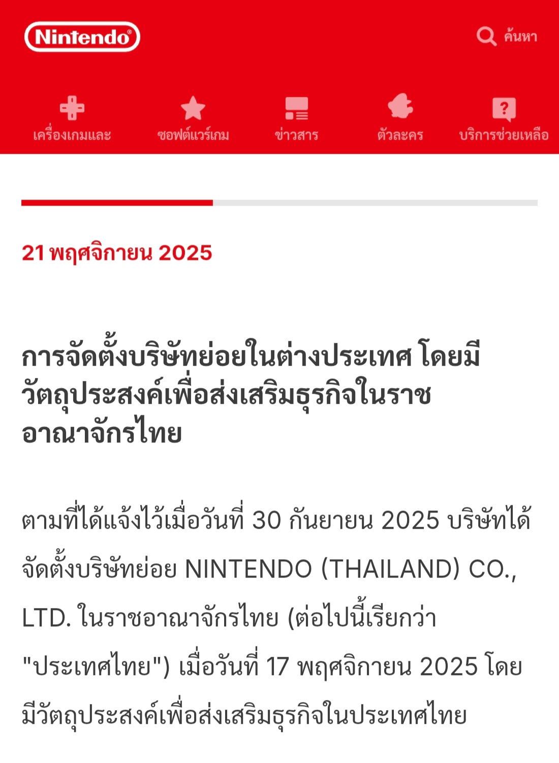 ปุกาศ! nintendo ประกาศตั้งบริษัทในไทยอย่างเป็นทางการ