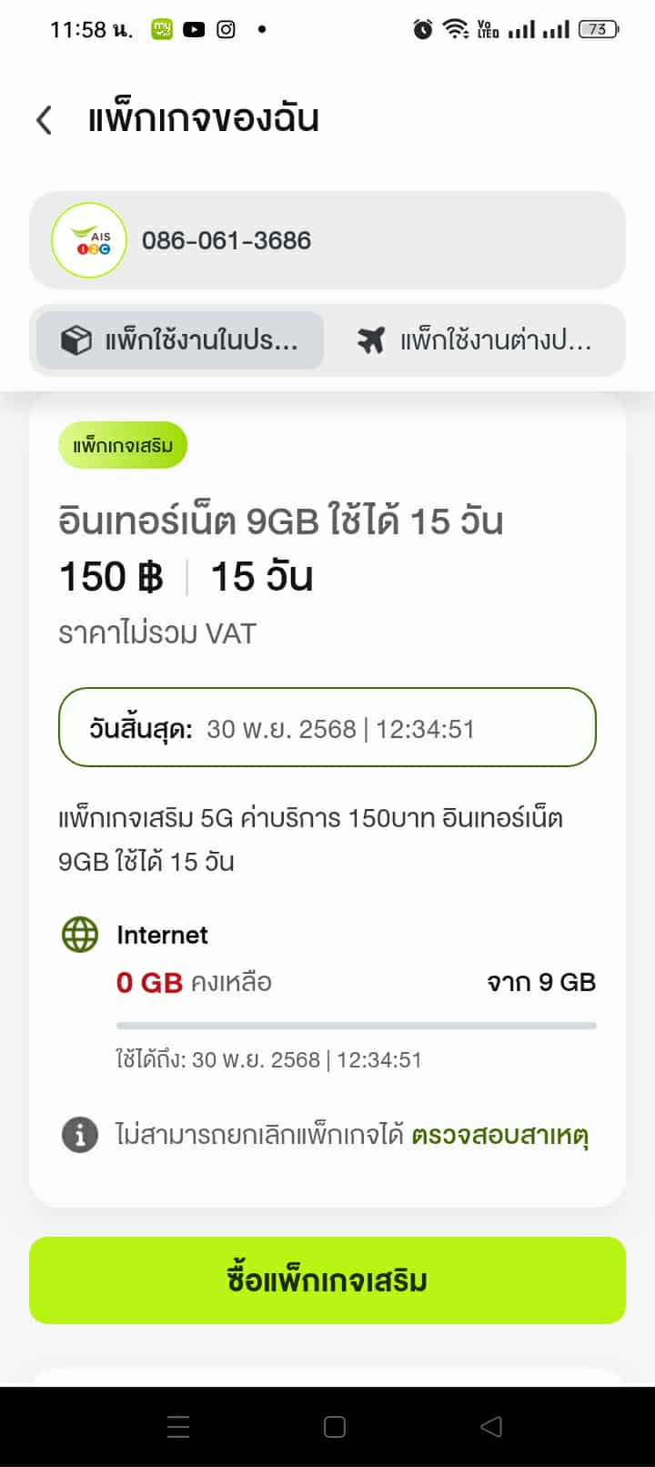 ยกเลิกเน็ตทรู เบอร์ 0842380809 ด่วน ยังมีเเพ็กเกจ150สามสิบวันอยู่ไหม