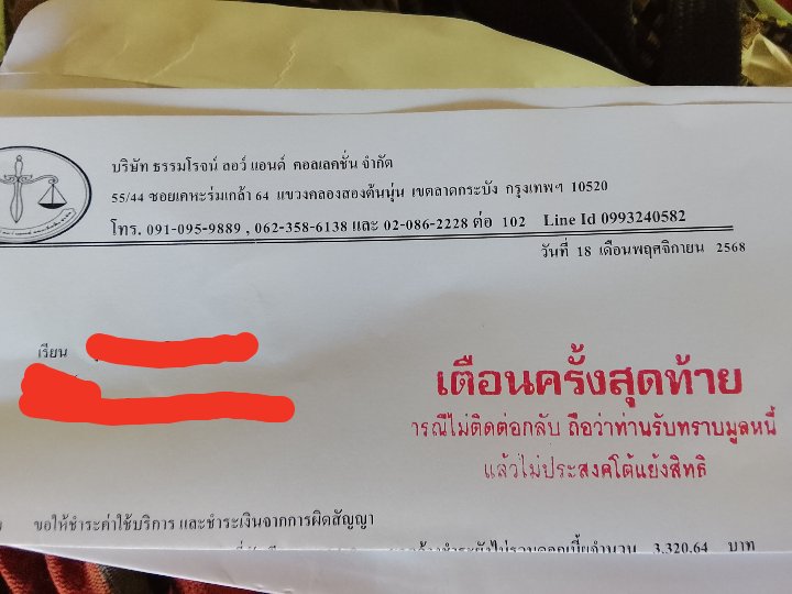 มีใครโดนขู่ว่าจะลงพื้นที่บางไหมคะ จริงเราค้างยังไม่ถึง1 เดือนเต็ม ค้างแค่21 วัน ขอเลื่อนวัน และบอกว่าจ่ายเป็น 2 งวด ภายในเดือนนี้ เจ้าหน้าที่ก็ไม่ยอม
